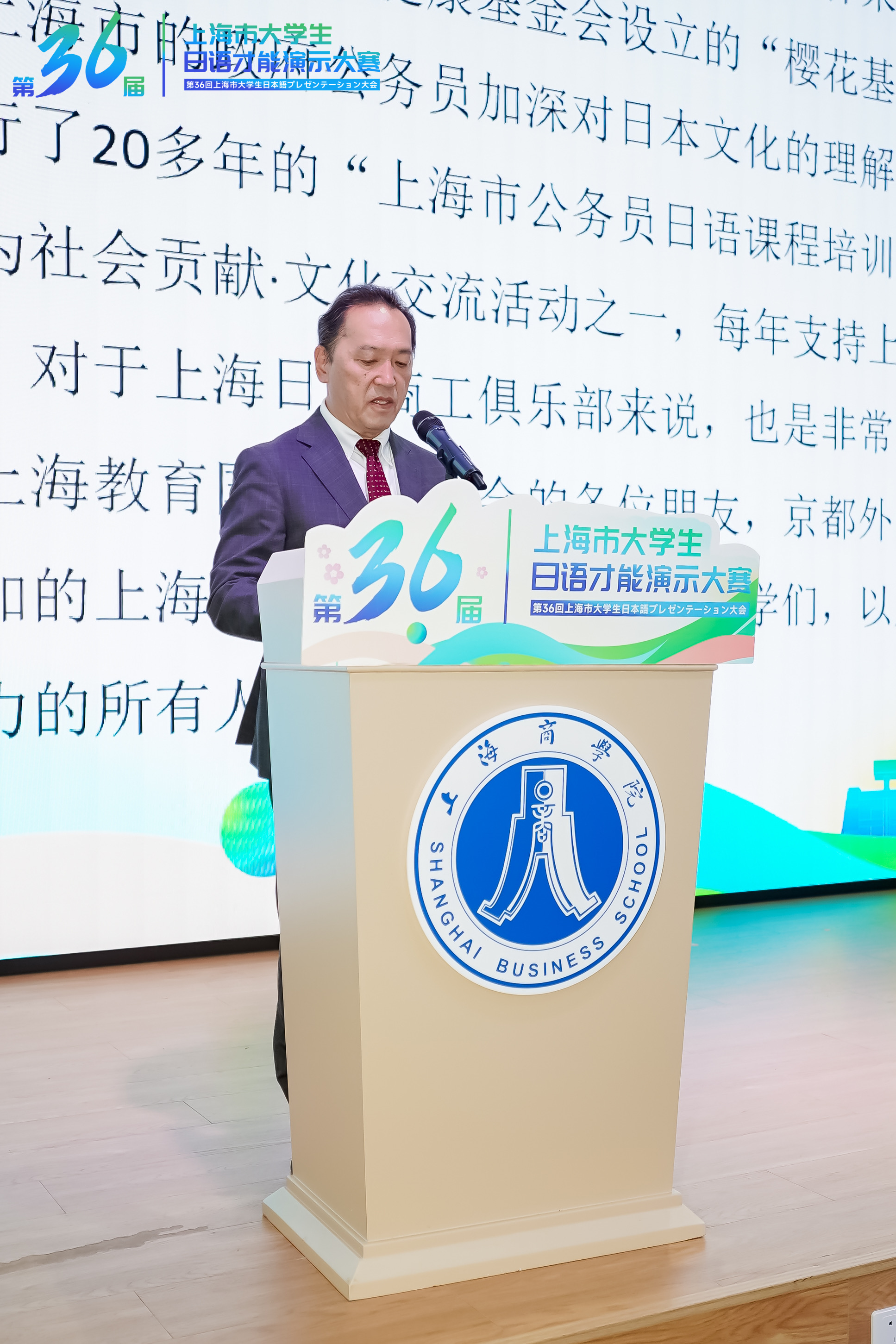 经过两个环节的激烈角逐,21位选手出色地完成了全部赛项。在全体评委离席评分期间,上海日本商工俱乐部事务局长中村仁先生作为赞助单位代表上台作嘉宾致辞。他希望参加本次大赛的青年学生要继续提高日语水平,在加深对日本社会文化理解的同时,利用日语向日本传播中国文化和现代中国飞速发展的真实情况,成为中日两国间友谊的桥梁。