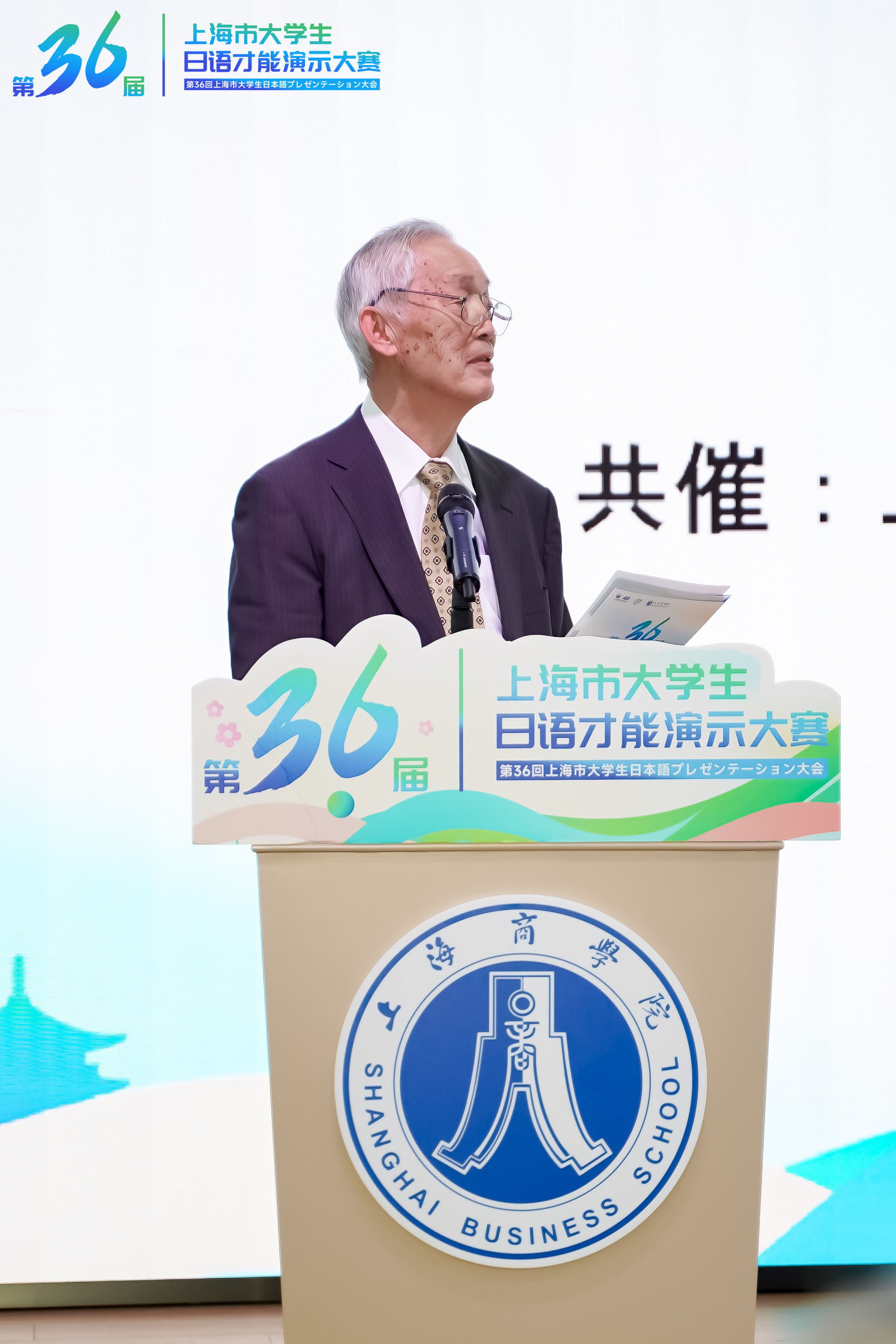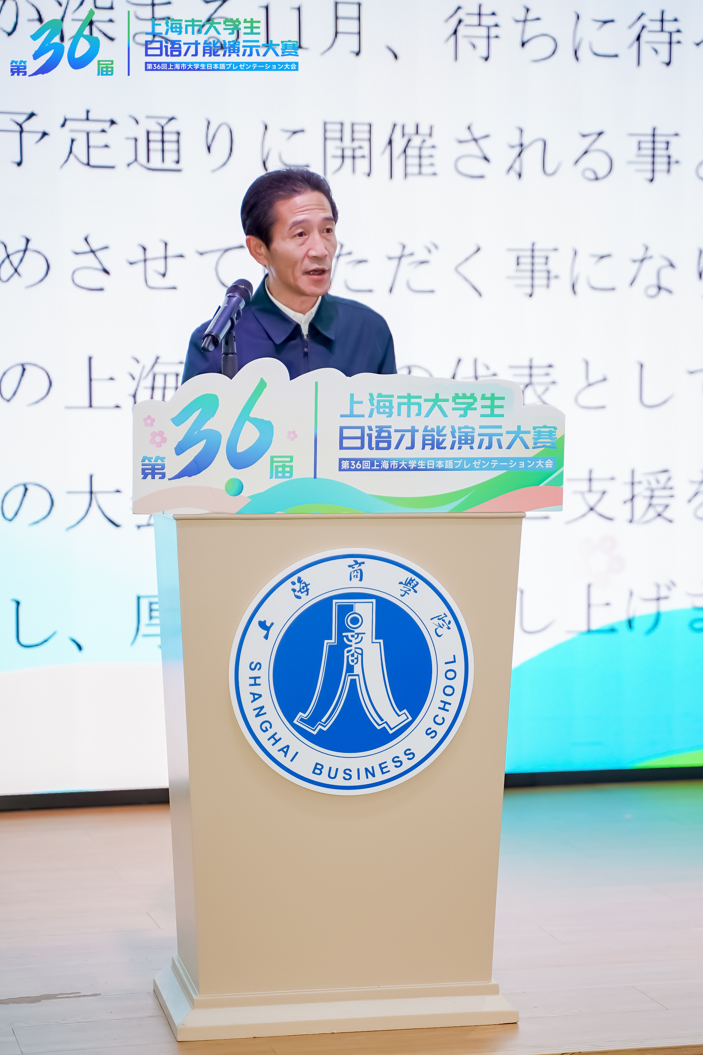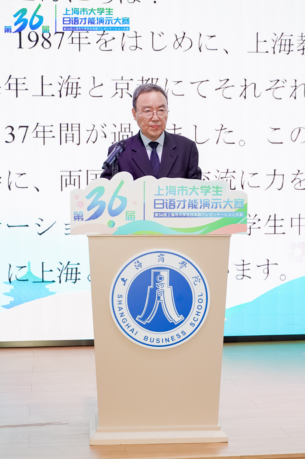 比赛开始,上海教育国际交流协会会长姜海山先生、京都外国语大学理事长兼总长堀川徹志先生、上海商学院党委副书记、校长吴忠先生、日本国驻上海总领事馆副总领事竹中惠一先生依次致辞,对促进上海市大学生日语水平提高以及中日在教育文化等领域的深入交流表达了美好祝愿与期盼。