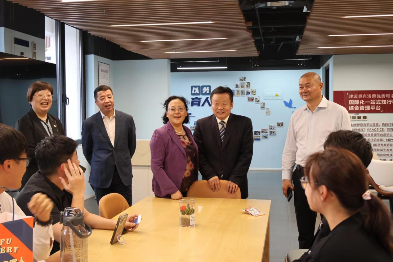 沈大明、吴忠对代表团的来访表示了热烈欢迎,分别在漕宝路校区、上海洛桑酒店管理学院实习基地亲切接待了代表团一行,向他们介绍了上海商学院漕宝路校区建设情况,表示学校将依托上海洛桑酒店管理学院国际化平台,把漕宝路校区打造成产教融合示范区,欢迎行业牵头协会和头部企业到校合作。