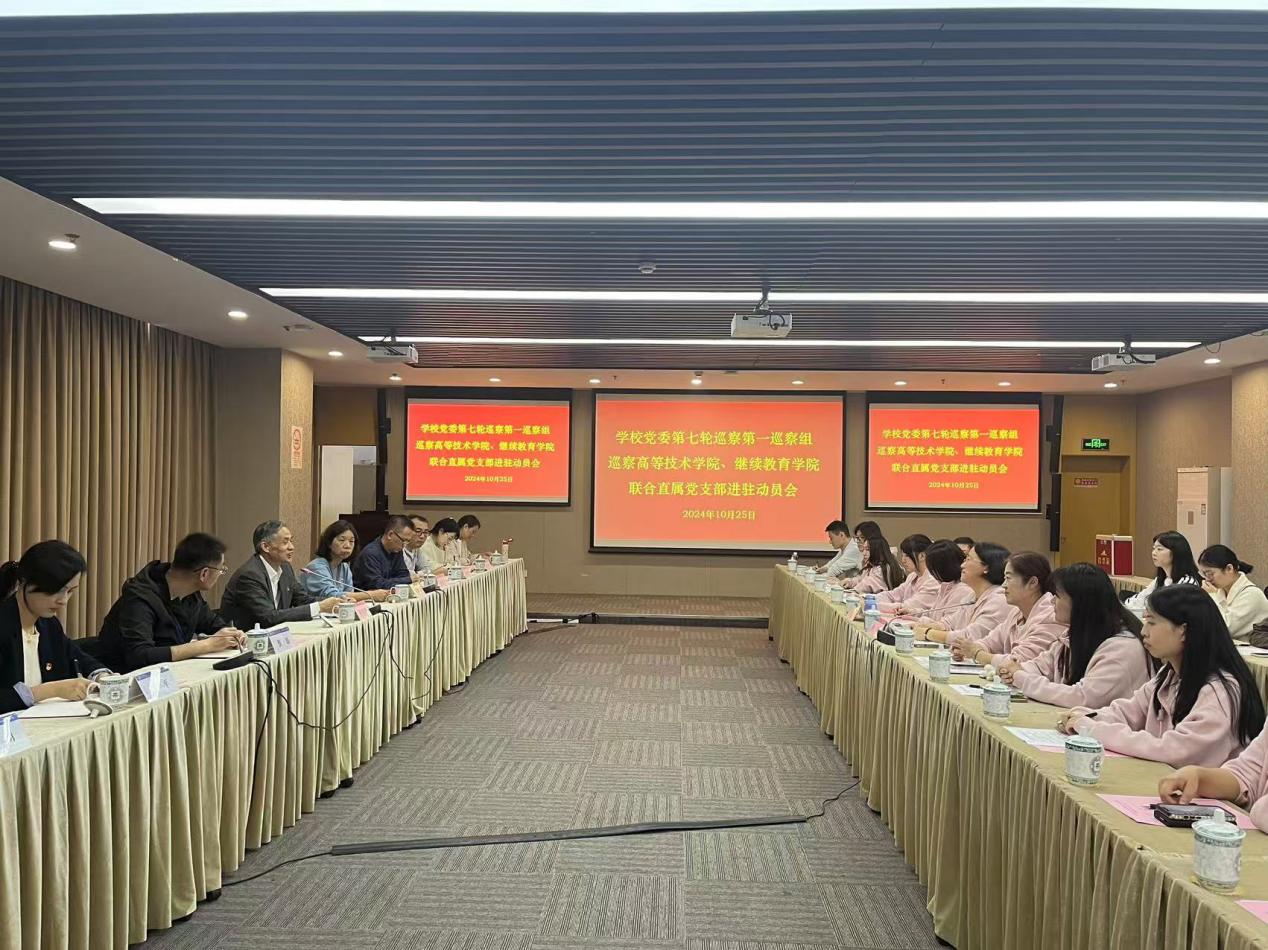 根据学校党委关于巡察工作的统一部署,10月25日,学校党委第七轮巡察完成进驻。两家被巡察单位高等技术学院、继续教育学院和商务信息学院分别召开巡察进驻动员会,第七轮第一、第二巡察组同步进驻。校党委副书记陈晓峰,党委常委、组织部部长朱巍娟,第一巡察组组长邵小平、第二巡察组组长朱燕及巡察组全体成员,宣传部、巡察办以及被巡单位教职工代表参加会议。