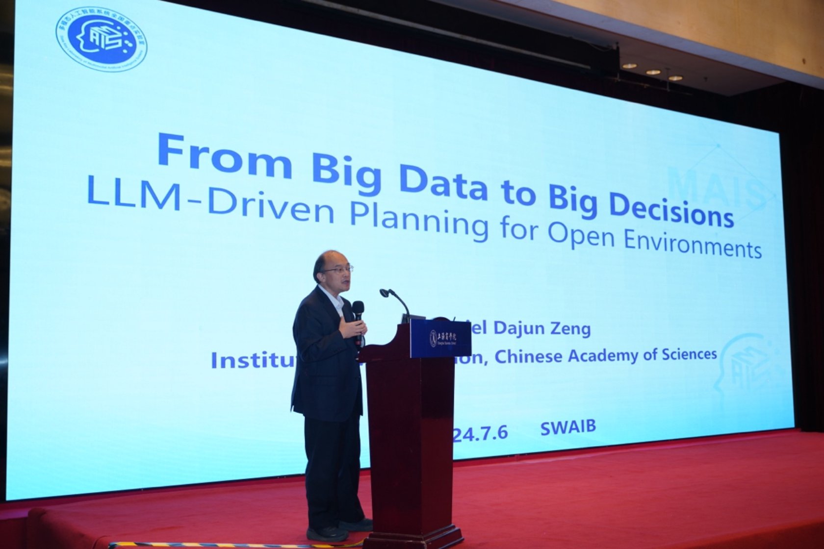 Daniel Dajun Zeng教授以“从大数据到大决策:开放环境中的大型语言模型驱动规划”为题展开分享,具体包括大语言模型时代的决策,接下来运用Deep Planner和Open Planner为例讨论开放环境下的规划,并在军事,国际关系、医疗健康,商务,航空、交通控制等领域下有着广泛的应用。讨论了当前运用大模型作为决策智能体进行社会方针政策的模拟,并指出大语言模型驱动下决策制定的主要挑战,如合理性、可靠性、安全性、可解释性等。最后指出了决策方法和人工智能的有机结合下达到决策智能。