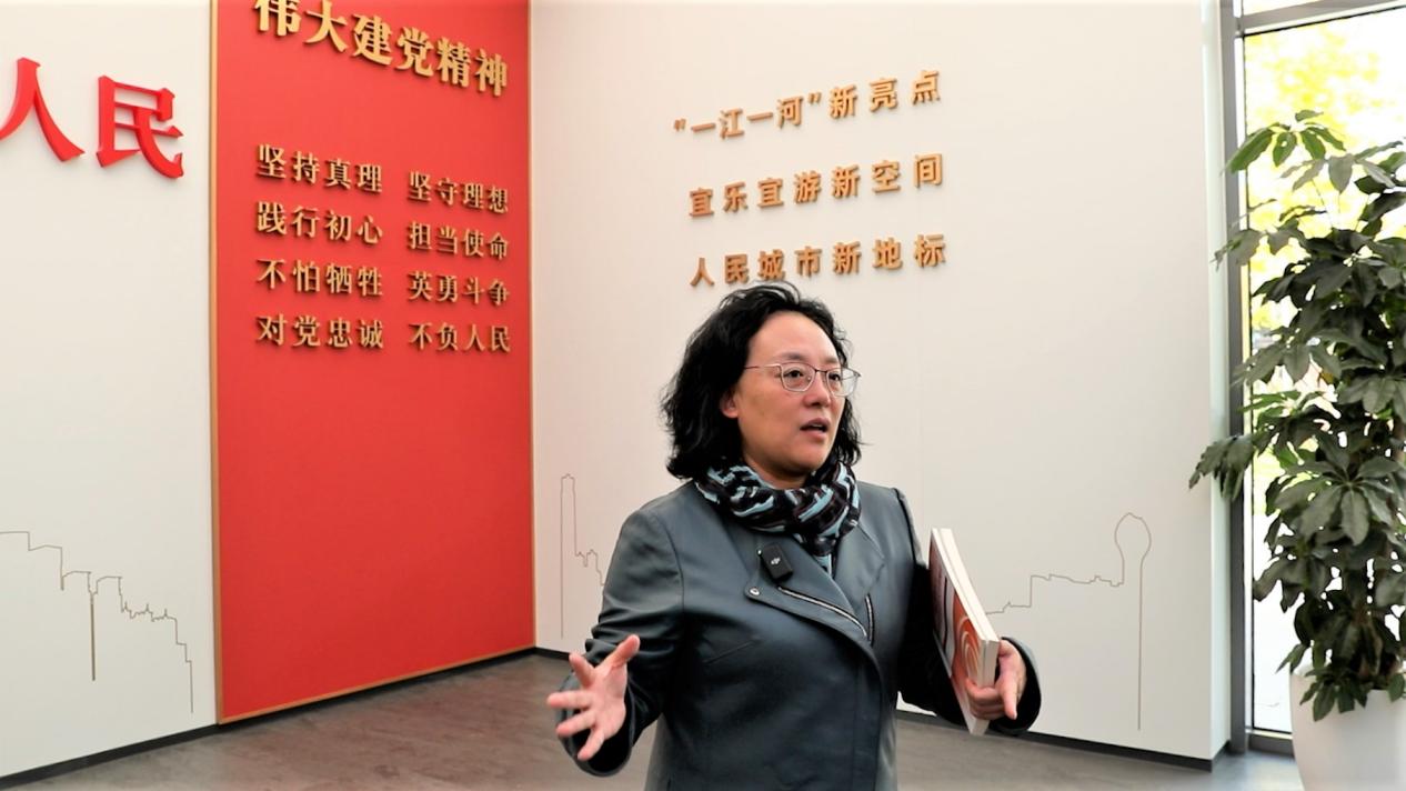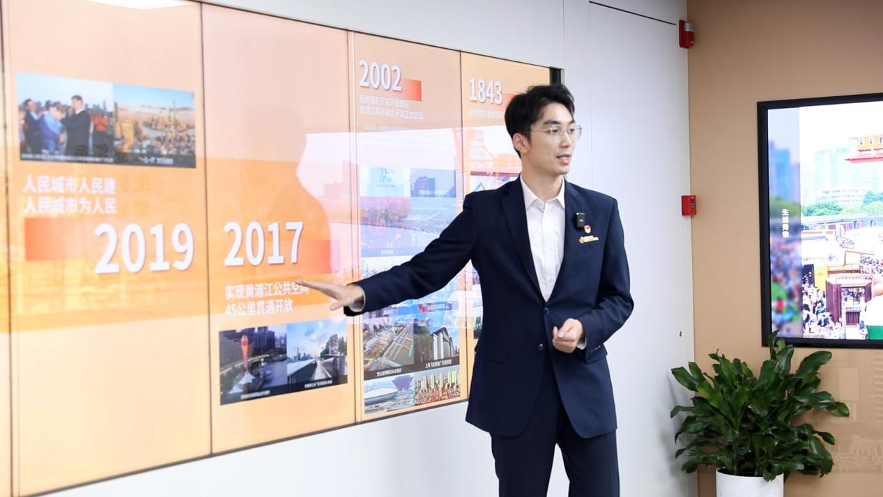 图为徐汇滨江党群服务中心讲解员为师生讲解