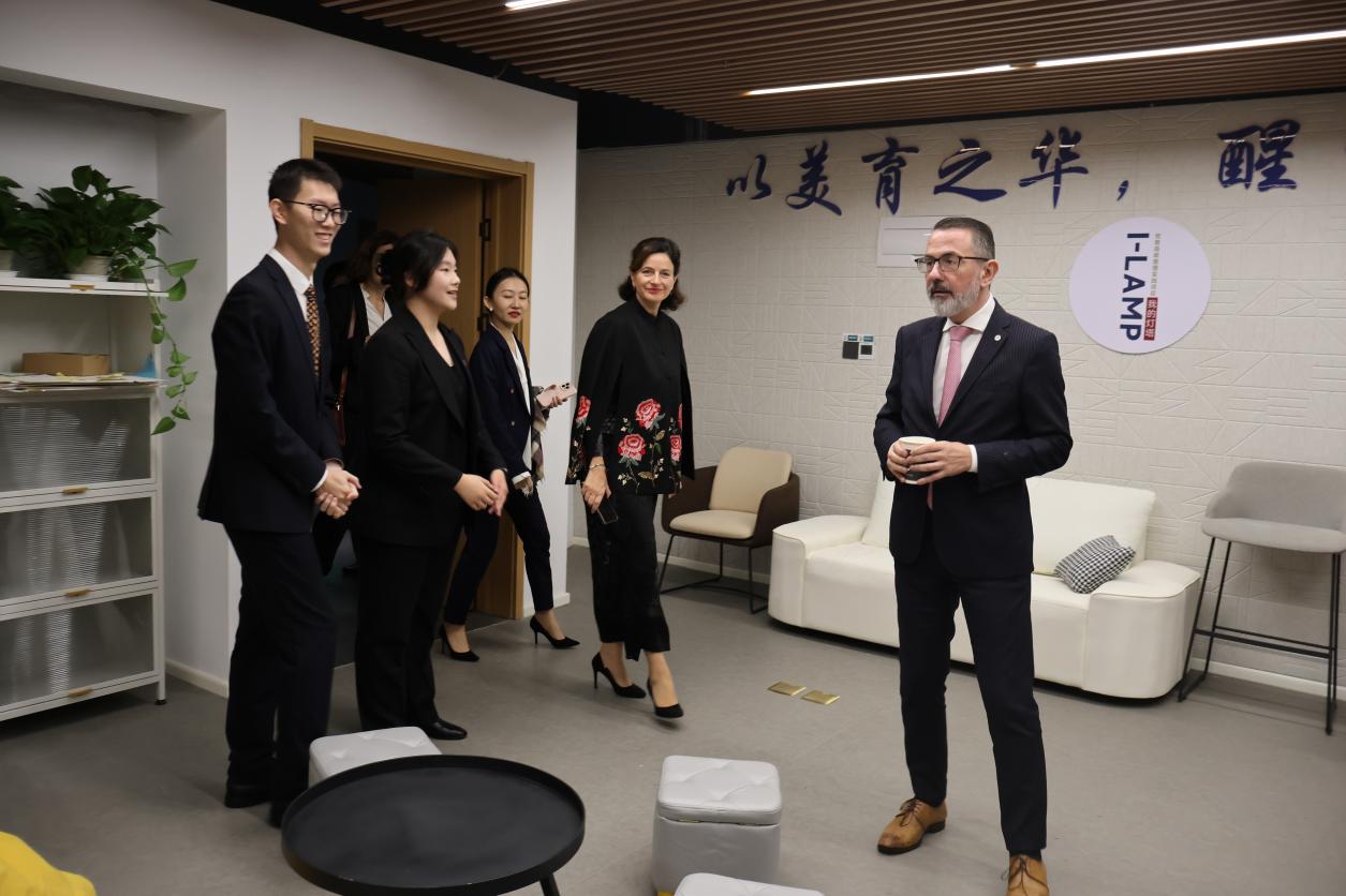 会前,副校长劳晓芸率EHL集团代表团实地参观了漕宝路校区各个教学及生活场所,由学院学生大使向代表团一行进行了详细的介绍,并就咖啡、酒水及茶艺实训室、一站式综合管理平台、元宇宙体验中心、未来数智教学中心等场所进行了现场观摩。