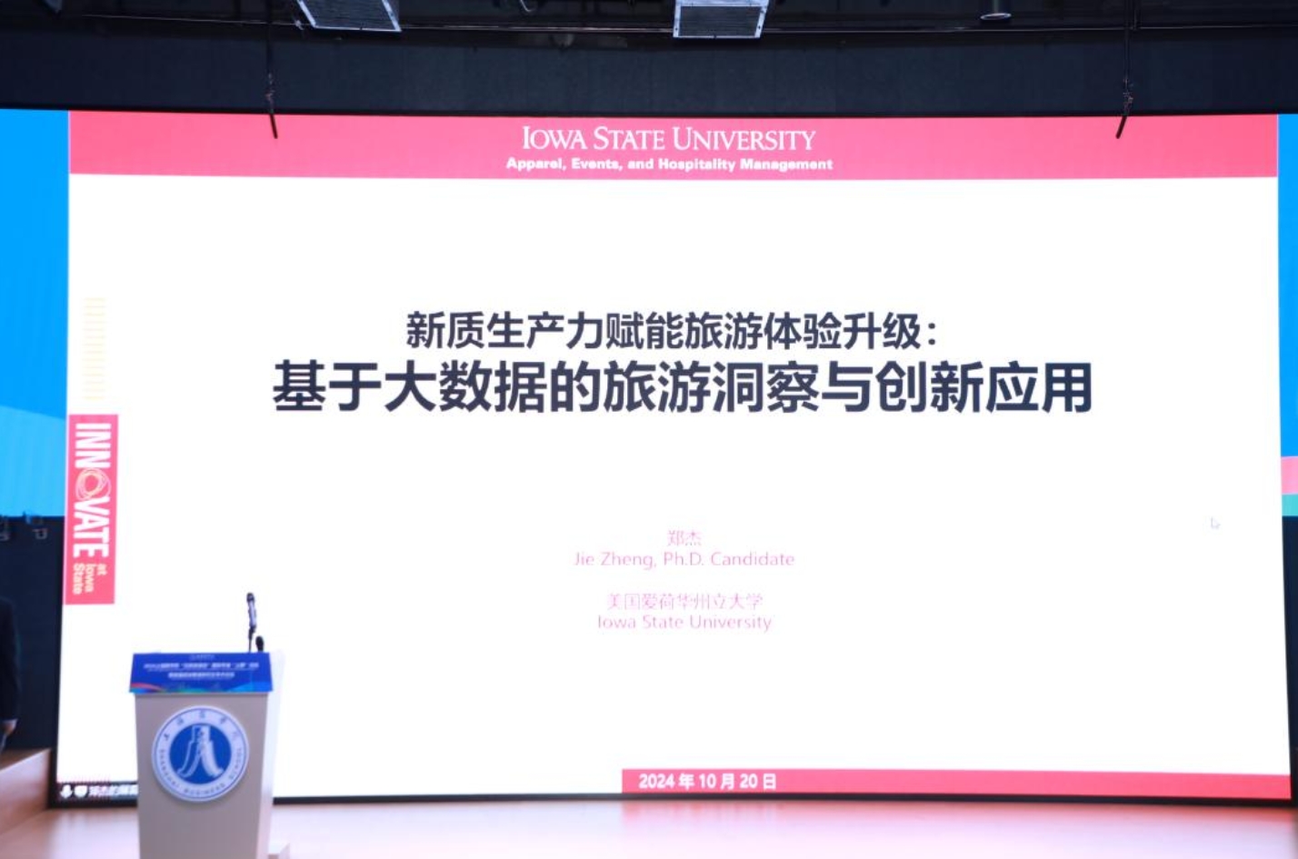 第六个主题由美国爱荷华州立大学博士研究生郑杰在线上呈现了他的研究成果《新质生产力赋能旅游体验升级:基于大数据的旅游洞察与创新应用》,深入探讨了如何通过新的生产力要素来提升旅游体验的质量,还着重阐述了大数据在此转型过程中的核心作用及其对旅游行业创新发展的催化效应。