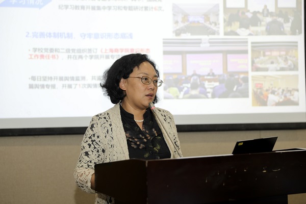 图为党委副书记、副校长劳晓芸部署下半年重点工作
