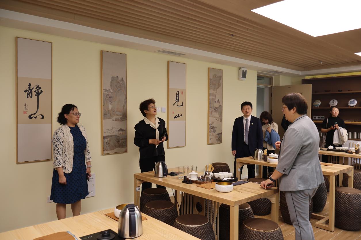 劳晓芸书记对宁夏理工学院来访表示了热烈欢迎并亲切接待了代表团一行,向他们介绍了上海商学院漕宝路校区建设情况。上海洛桑酒店管理学院执行院长胡笑寒带领一行人参观了客房实训室、酒水、咖啡及茶艺实训室、红色元宇宙体验中心及其他教学生活场所。