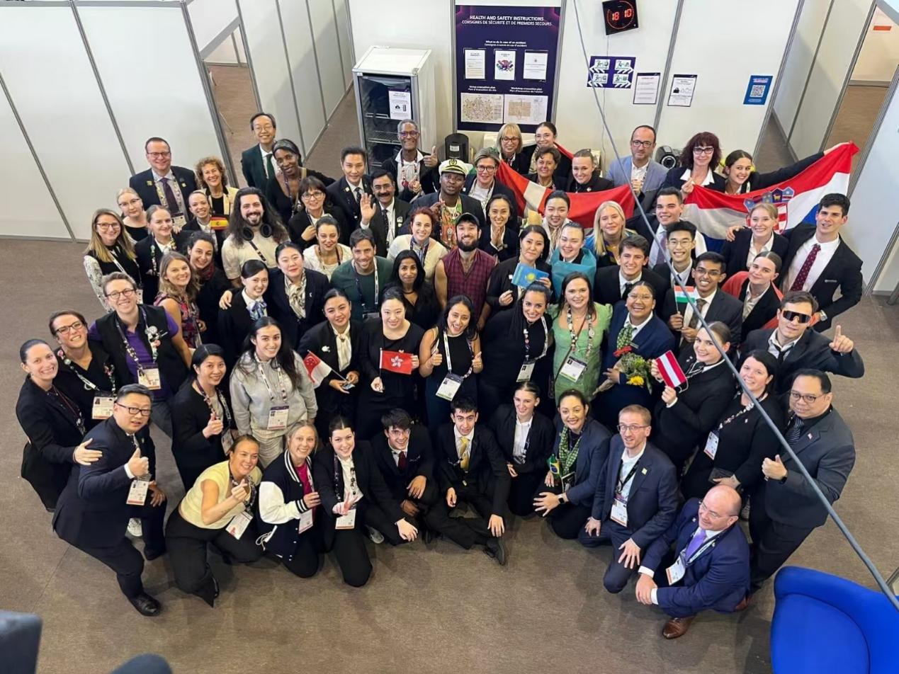 第47届世界技能大赛酒店接待项目选手、裁判、竞赛经理及演员等合影