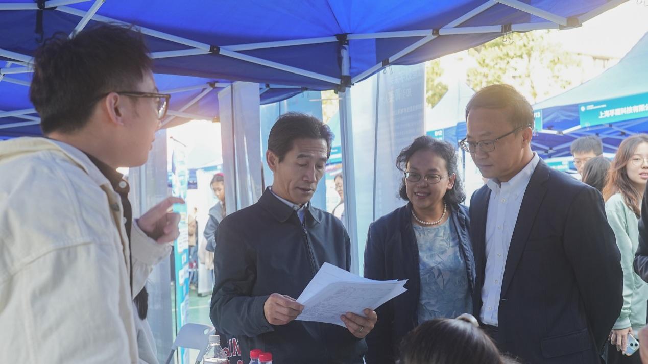 10月29日下午,上海商学院2025届毕业生秋季校园招聘会在中山西路校区篮球场举行。本次招聘会聚焦人工智能等先导产业和电子信息、汽车、先进材料、时尚消费品、重点产业等关键领域,吸引了互联网金融、专业服务、建设交通、商贸服务及教育文化传媒等多个领域的企业报名,学生处(就业创业指导服务中心)根据专业需求、岗位情况认真筛选企业,最终邀请了华为慧通、小米集团、蔚来汽车、招商证券、光明乳业、希尔顿酒店、山姆超市等共122家优质用人单位入校招聘,为我校学生提供469个岗位。校党委书记沈大明,校党委副书记、校长吴忠,校党委副书记、副校长劳晓芸亲临招聘会现场,与用人单位和毕业生亲切交谈。