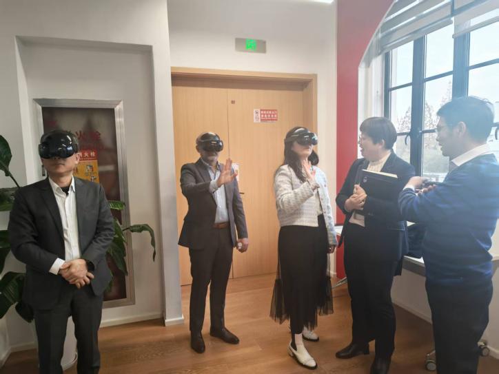 图为欧洲工商管理学院(INSEAD)一行参观新媒体与元宇宙实验室