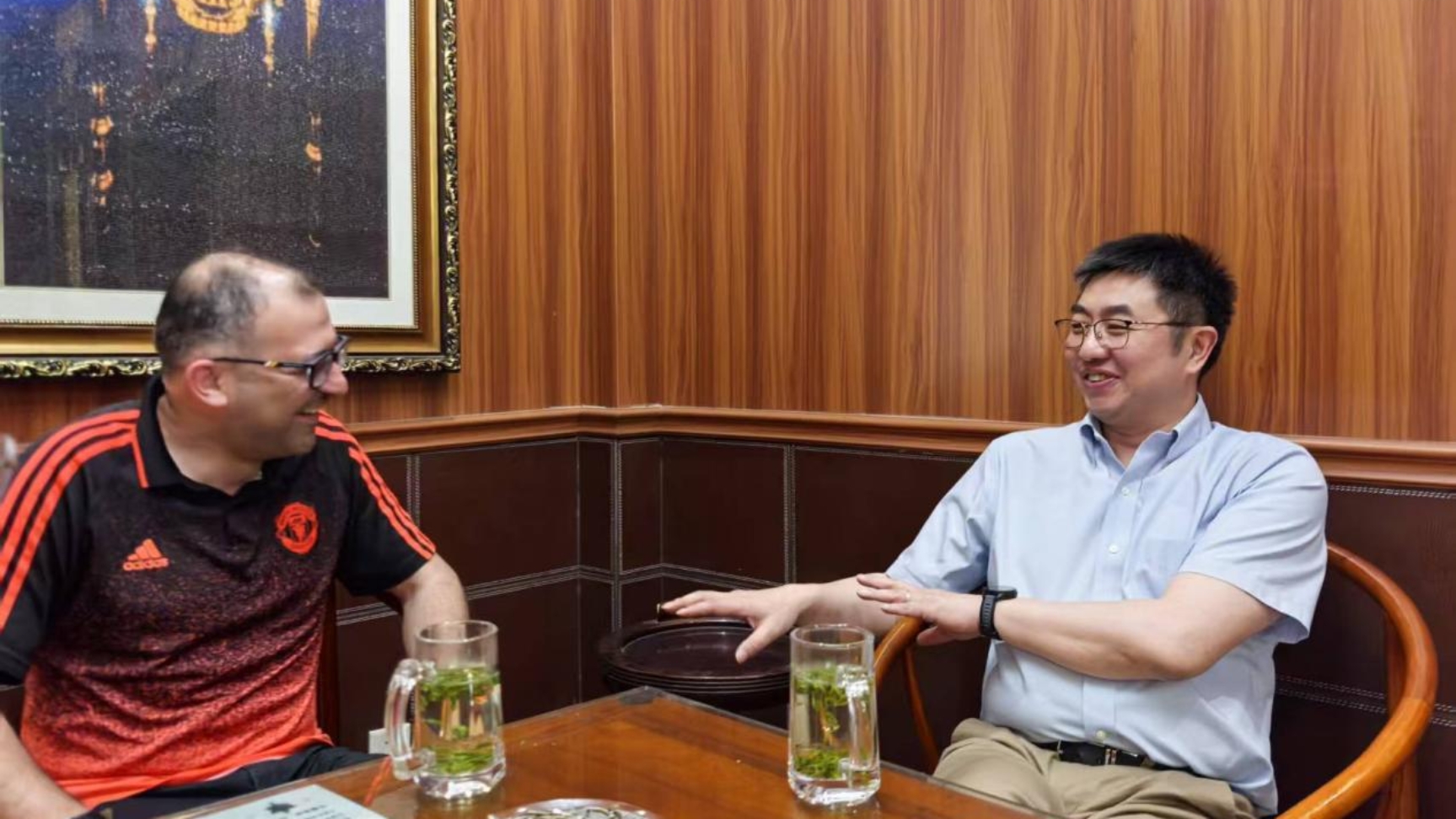 图为陈巍与武萨尔交流
