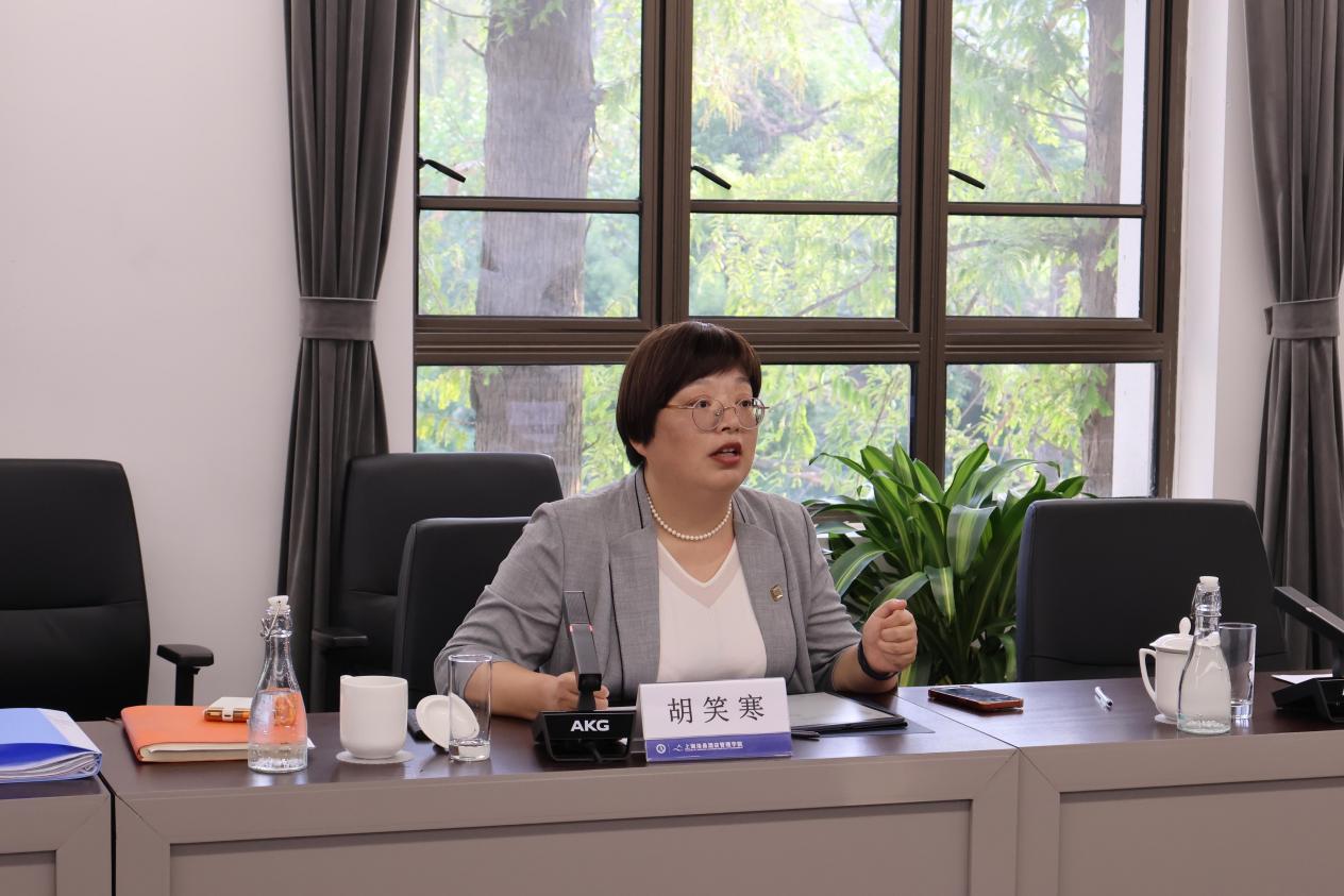 图为胡笑寒介绍上海洛桑酒店管理学院基本情况