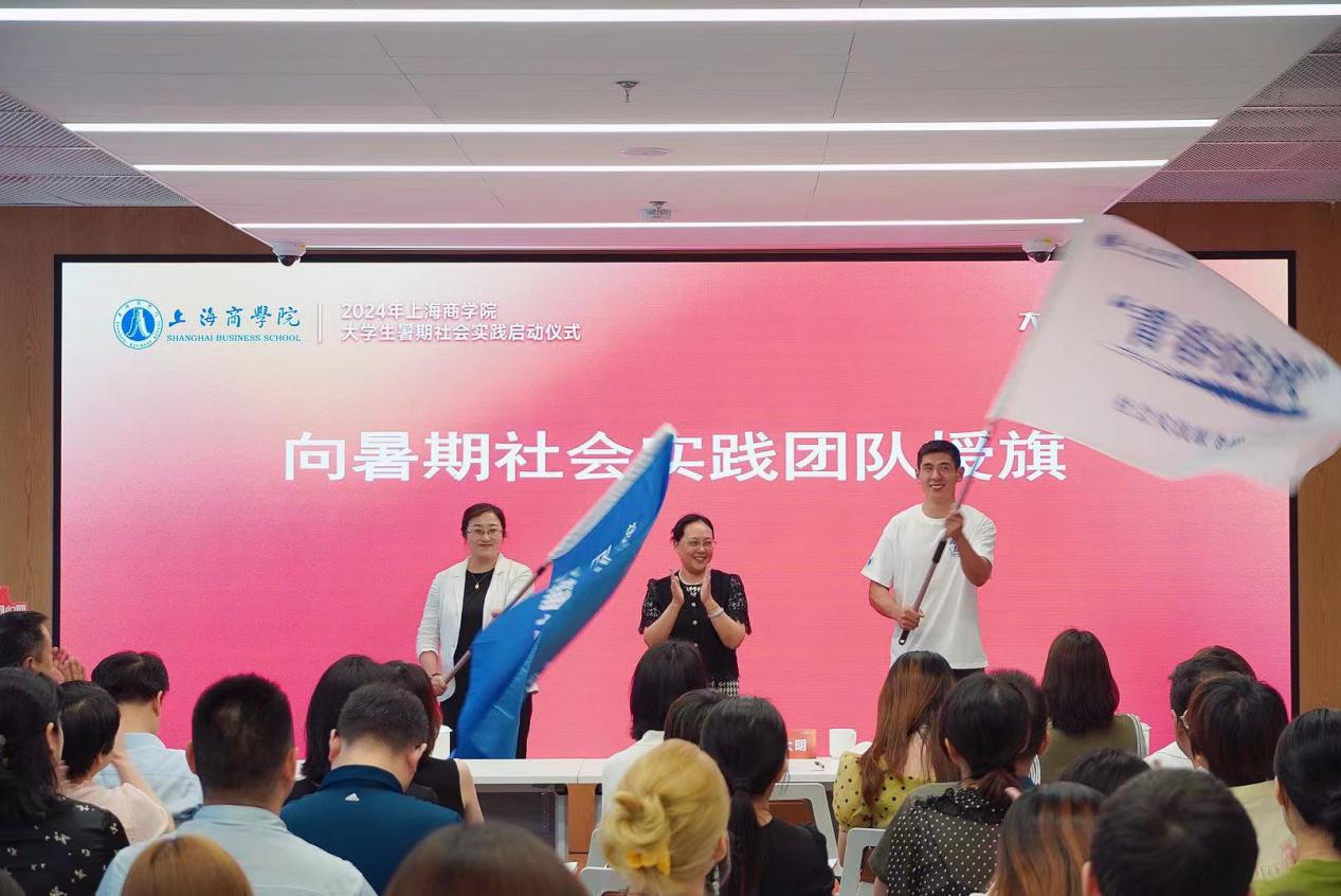 新征程,新出发,新气象。上海商学院大学生暑期社会实践团队即将启程奔赴祖国各地,校党委副书记、副校长劳晓芸为“青春绽放”计划暑期社会实践团队及“百名辅导员千家行”走访调研团队授旗,号召上商青年将“思政小课堂”和“社会大课堂”紧密融合,在实践中了解社情、国情,坚定理想信念。
