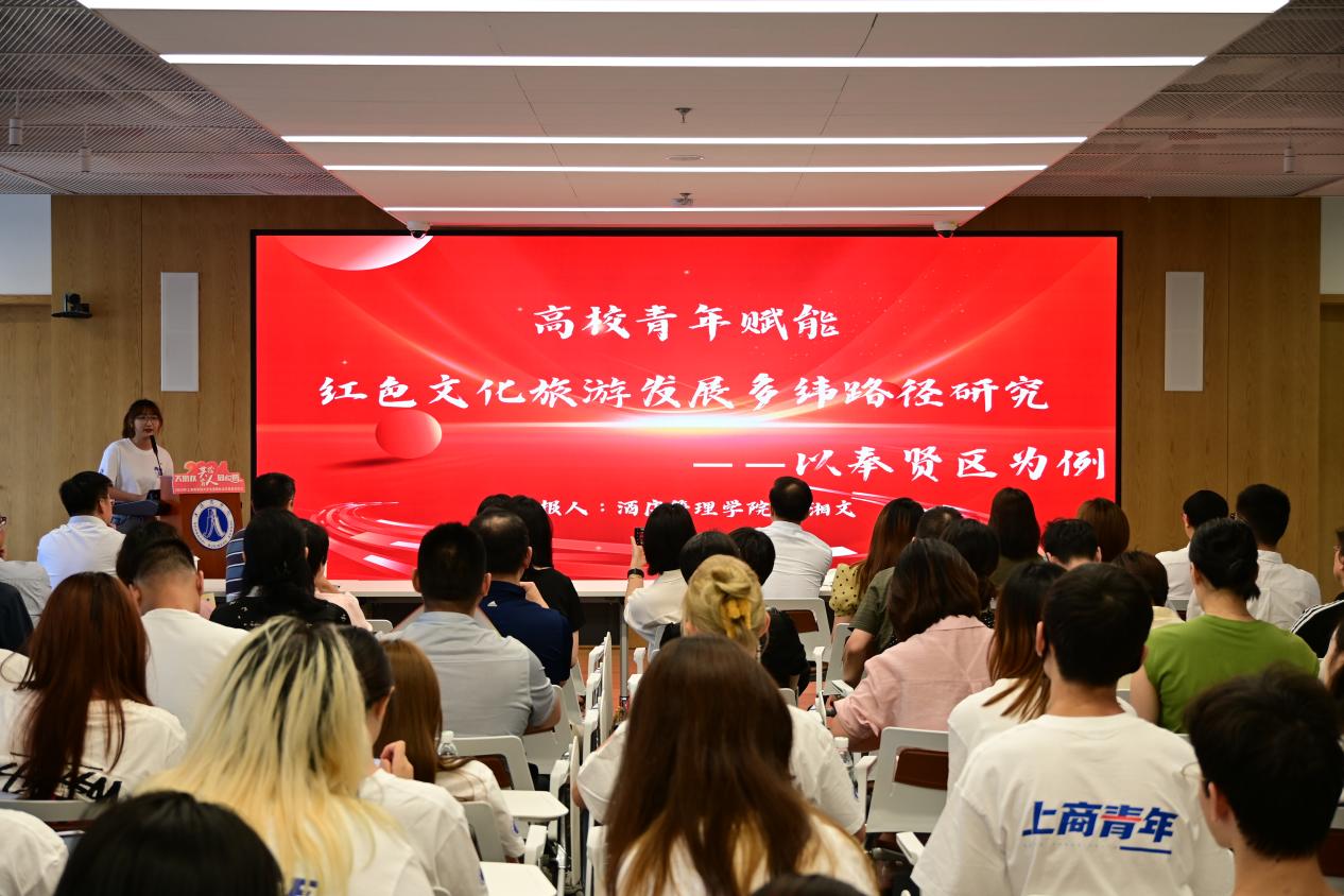 行之力则知愈进,知之深则行愈达。学校以社会实践活动为契机,引导上商青年在实践中以专业所学贡献国家、以知识技能回报家乡,以开拓进取服务社会。实践新征程,探索勇前行。一批批优秀的社会实践项目不断涌现,在各大赛事中斩获多个奖项,受到媒体广泛关注报道。2023年“知行杯”上海市大学生社会实践大赛获奖代表、酒店管理学院杜湘文同学作社会实践项目分享《高校青年赋能红色文化旅游发展多维路径研究——以奉贤区为例》,激励广大上商青年在社会实践的征程里砥砺奋进,建功立业。