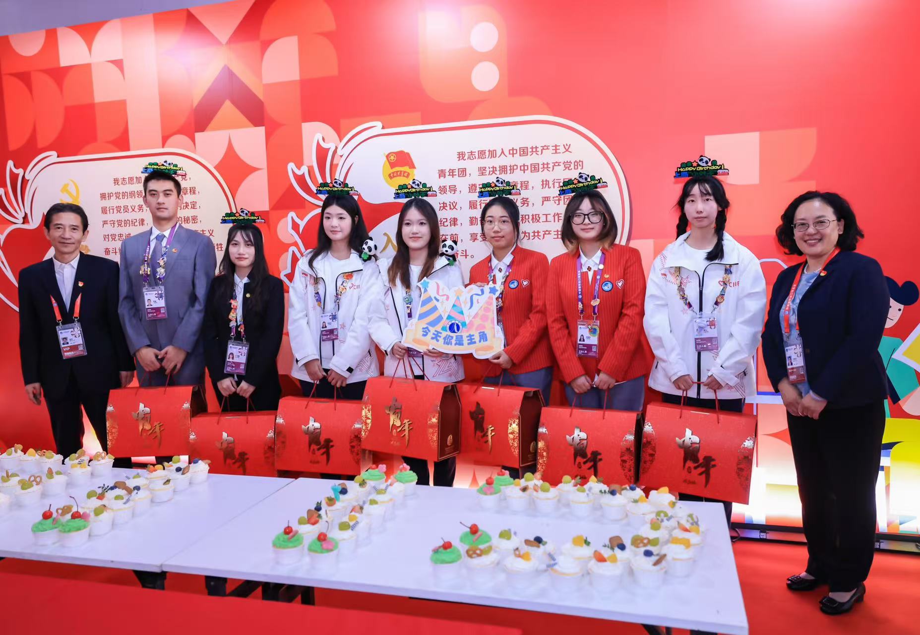 在服务进博的过程中,校领导时刻关注、关心、关爱着上商“小叶子”。校领导为7位寿星“小叶子”庆祝集体生日,并为他们送上生日祝福。