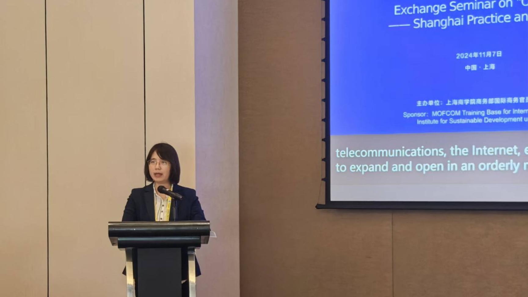 11月7日下午,我校主办的“优化营商环境——上海实践与丝路国际合作”交流研讨会在虹桥绿地铂瑞酒店顺利举行。上海市商务委员会总经济师罗志松、我校副校长张绍华以及来自蒙古、卢旺达、亚美尼亚、萨尔瓦多、瑙鲁、埃塞俄比亚、尼泊尔、津巴布韦、坦桑尼亚等9个国家的39名国际商务官员出席了交流研讨会。我校商务部国际商务官员研修基地(上海)副主任、“一带一路”可持续发展研究院执行院长陈巍主持会议。