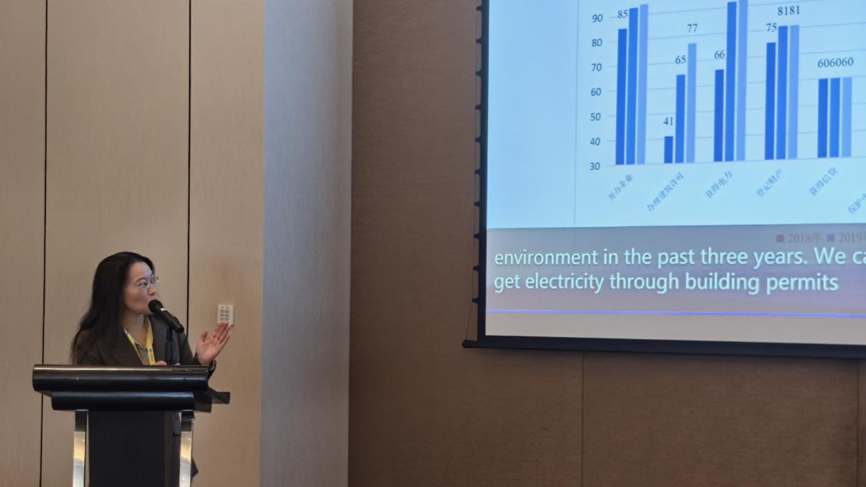 在中方专家发言阶段,上海对外经贸大学MIB教育中心主任汪波首先进行了题为“上海营商环境的实践和经验”的演讲,她阐述了全球营商环境报告的中国表现、上海营商环境迭代之路、经验与启示等内容。