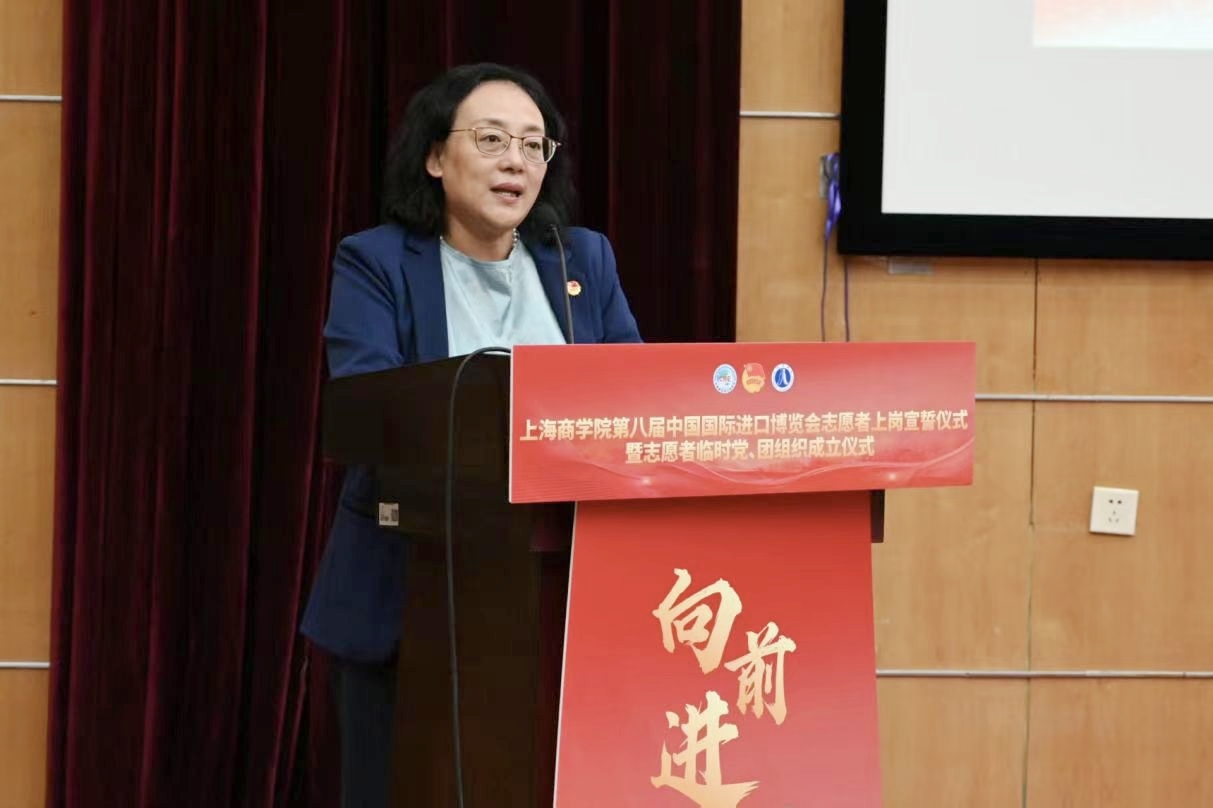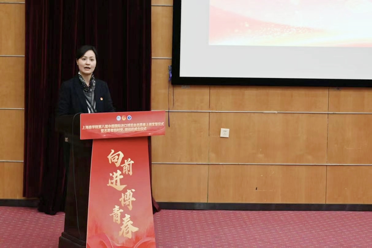 建强堡垒,先锋领航。党委组织部副部长许平宣读《关于成立上海商学院第八届进博会志愿者临时党、团组织的决定》。她强调,临时党、团支部要充分发挥共产党员的先锋模范作用和共青团员的青年突击队作用,冲锋在前、勇挑重担,打造一支思想过硬、能力突出、作风扎实的志愿者队伍,为推动进博会“越办越好”贡献上商青年的先锋力量。