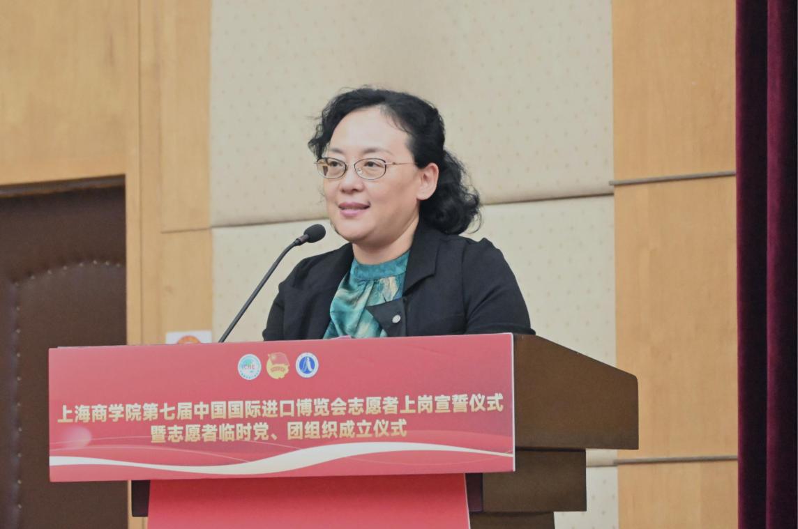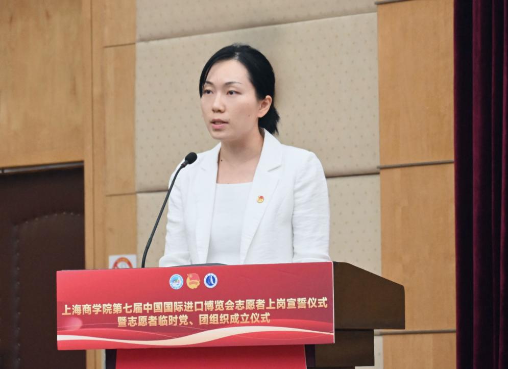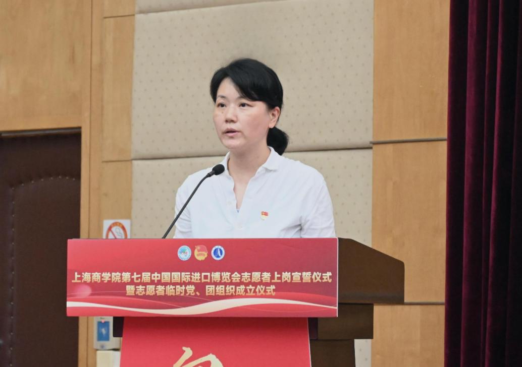 上海商学院举行第七届中国国际进口博览会志愿者上岗宣誓仪式暨志愿者临时党、团组织成立仪式