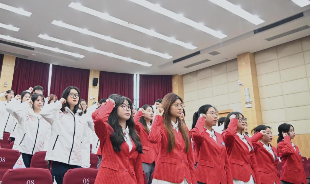 铿锵誓言,坚定决心。在各二级学院(院区)志愿者领队的领誓下,80名上商“小叶子”志愿者全体起立,共同宣誓“奉献友爱,互助进步!追求卓越,全力以赴!为祖国争光,为城市添彩!为进博,一起来!向前进,博青春!”庄严而嘹亮的青春誓言响彻报告厅,彰显了新时代上商青年的坚定与赤诚,以青春之姿、奉献之心,为祖国、为进博挺膺担当!