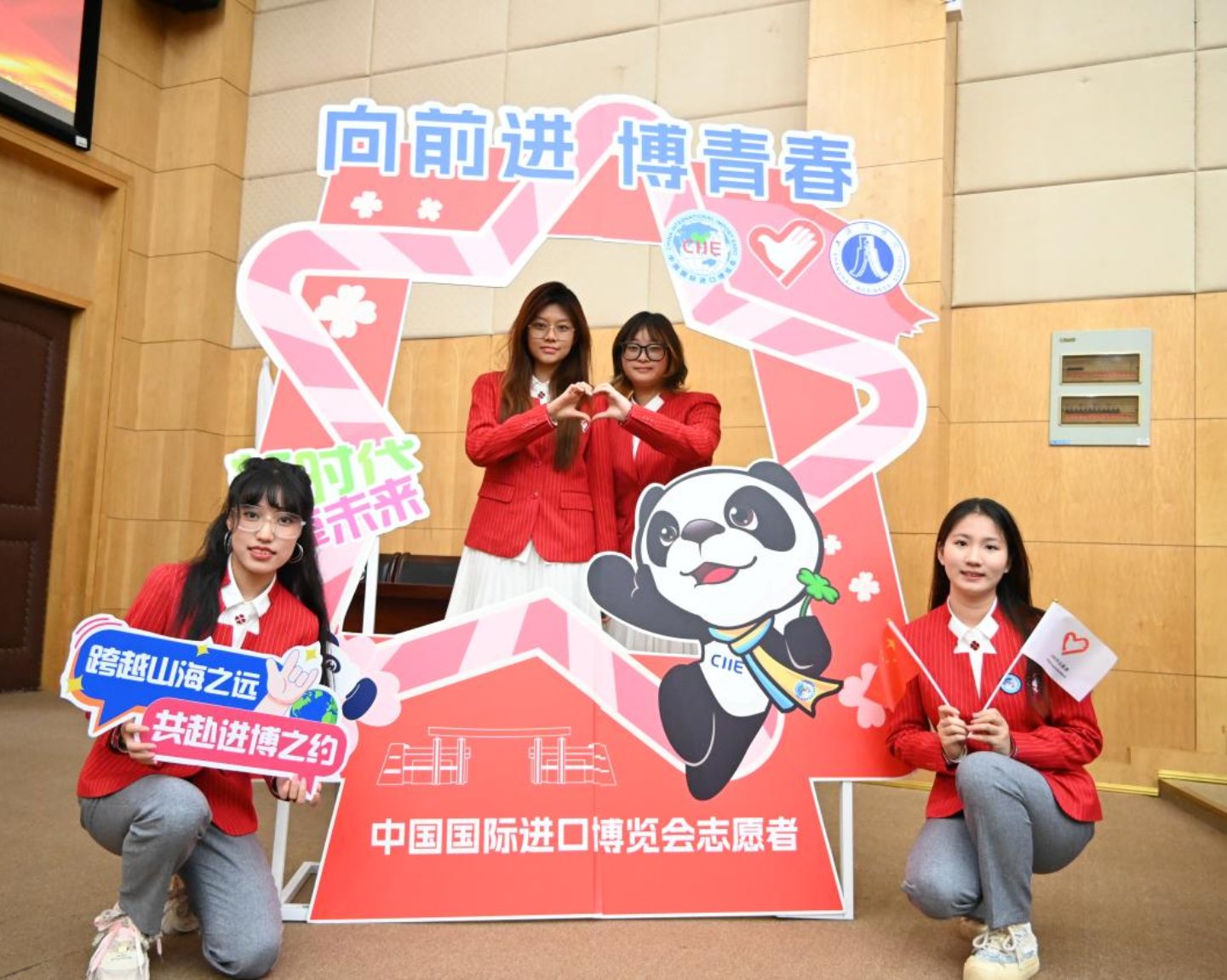 歌唱祖国,砥砺前行。仪式在嘹亮的《歌唱祖国》旋律中结束。本届进博会恰逢中华人民共和国成立75周年,又是党的二十届三中全会胜利召开后举办的重大经济外交活动,具有非同寻常的意义。生而逢盛世,青年当有为,上商“小叶子”志愿者必将不负责任、不辱使命,用青春的朝气和锐气凝聚起服务进博的强大合力,向进博展现热情、活力、担当、坚韧的上商“小叶子”风采,向世界展示“可信、可敬、可爱”的大国青年形象!为进博,一起来,向前进,博青春!
