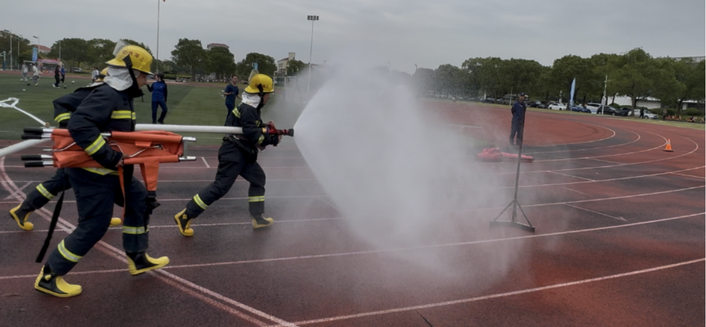 本次交流赛以“以志愿之名,赴安全之约”为主题,旨在检验高校消防志愿者的综合实战能力,搭建消防安全技能交流平台。赛事在400米跑道设置多场景组合竞赛项目,包括灭火器灭油桶火操、佩戴过滤式自救呼吸器制作绳结综合操、二带一枪打靶和水枪前伸长救助综合操四大核心环节,全面模拟初起火灾扑救、人员自救互助等真实应急场景,重点考察选手的个人技能熟练度、团队配合默契度、应急处置灵敏度和快速展开执行力。