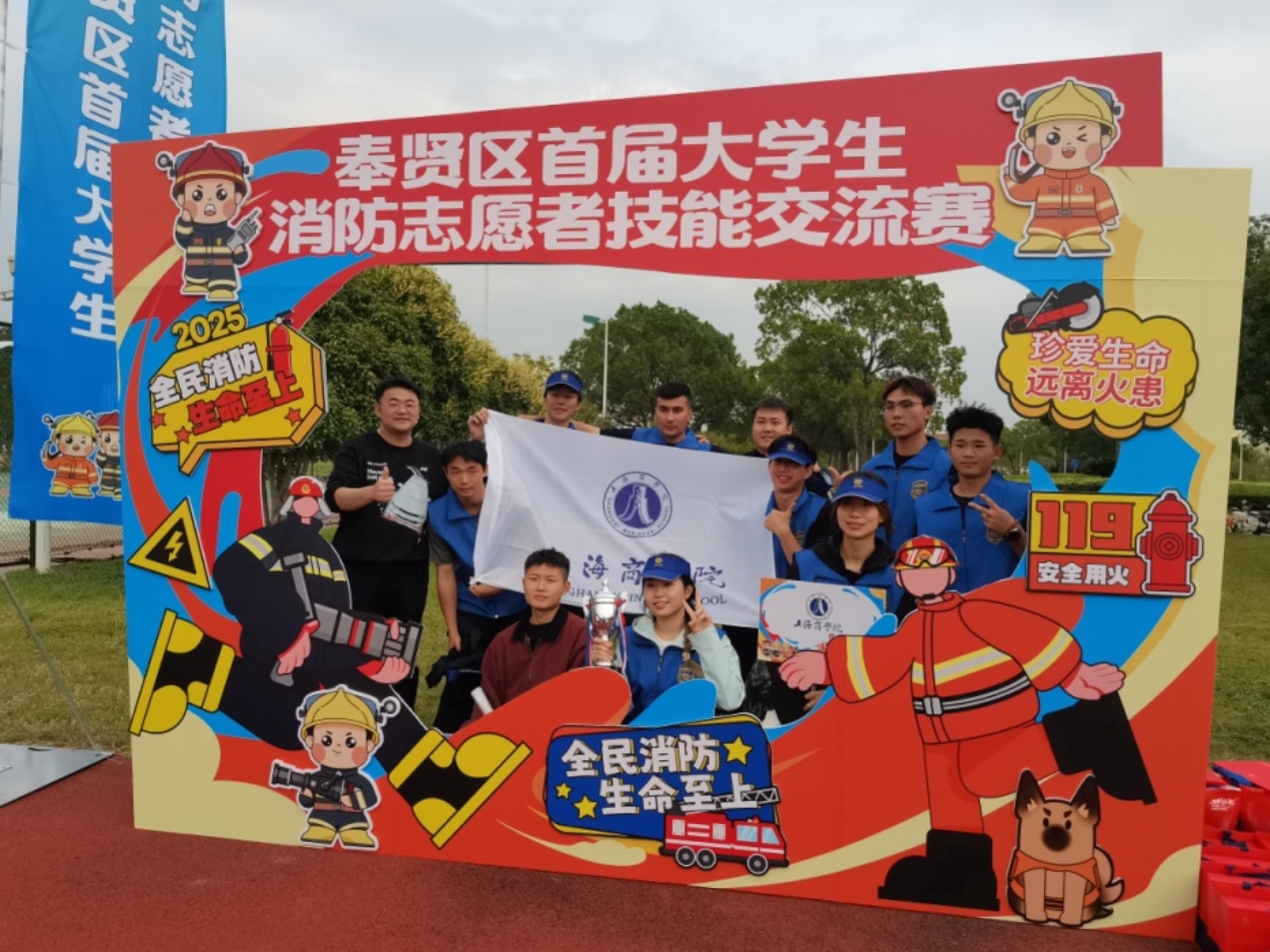 2025年全国消防宣传月来临之际,10月31日下午,奉贤区首届大学生消防志愿者技能交流赛在上海师范大学奉贤校区外操场举行,由4个学院9名队员(含1名领队)组成的学校消防志愿者代表队凭借扎实的专业技能、默契的团队协作和出色的应急处置能力,在激烈角逐中斩获亚军佳绩,以实际行动践行“全民消防、生命至上”的宣传主题,充分展现了我校学子过硬的消防安全素养。