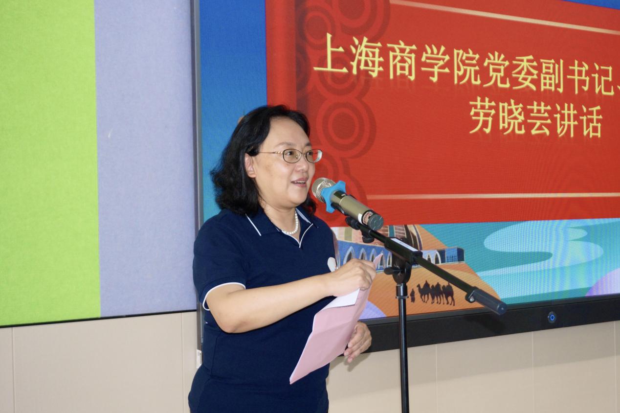 图为上海商学院党委副书记、副校长劳晓芸讲话