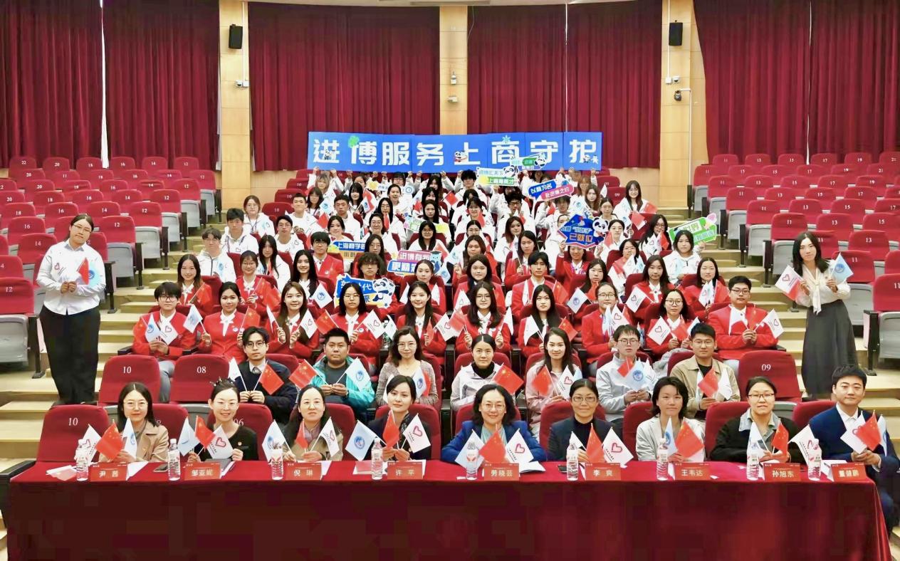 青春誓言,响彻时代。仪式在《歌唱祖国》的旋律中落下帷幕。2025年是实现“十四五”规划目标的收官之年,也是中国持续推进高水平对外开放,构建新发展格局的关键之年。本届进博会既是中国与世界共享机遇的务实平台,更是展示中国式现代化新征程上开放自信的生动窗口,意义非凡,影响深远。时代呼唤担当,青年肩负未来。全体上商“小叶子”将牢记“厚德博学,经世济民”的校训精神,以最高标准将青春的智慧与汗水挥洒在服务进博的每一个岗位,以卓越表现诠释新时代上商青年的担当,用真诚微笑传递上海城市的温度,以专业服务展现中国青年的风采,在进博舞台上谱写一曲无愧于时代、无愧于人民的青春华章!