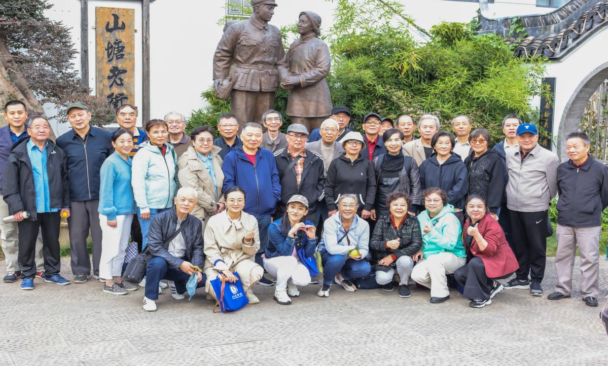 座谈会议后,30余名离退休教职工代表共赴金山区廊下镇山塘村,开展“走进山塘看变迁 红色研学聚初心” 参观学习活动。老同志们先后参观山塘村红色教育基地与乡村振兴示范项目,聆听革命故事,实地感受乡村发展变迁,在红色研学中进一步坚定理想信念,体会新时代国家发展的蓬勃活力。