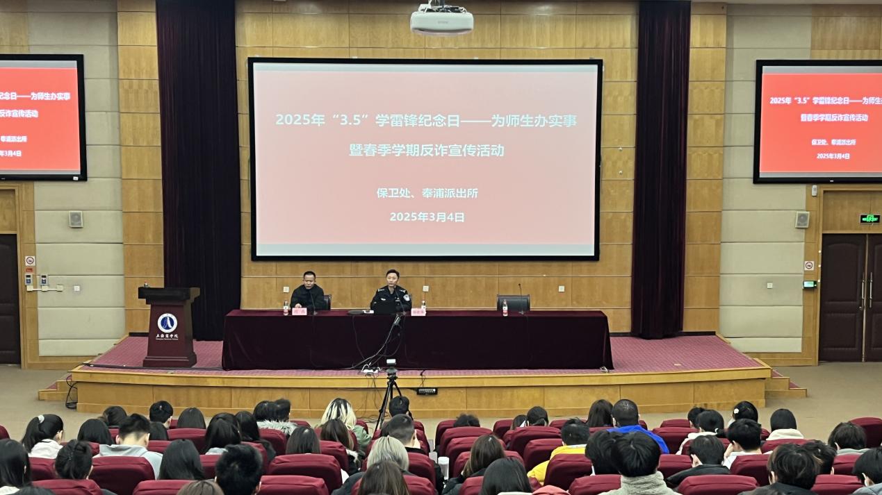 3月4日、3月11日、3月18日,党支部充分发挥组织优势,邀请奉浦派出所反诈民警杨晓伟警官走进校园,与支部党员教师携手,联合酒店管理、商务外语等学院,连续举办了三场反诈宣讲活动,吸引了全校近500人次师生员工踊跃参与,现场气氛热烈非凡。