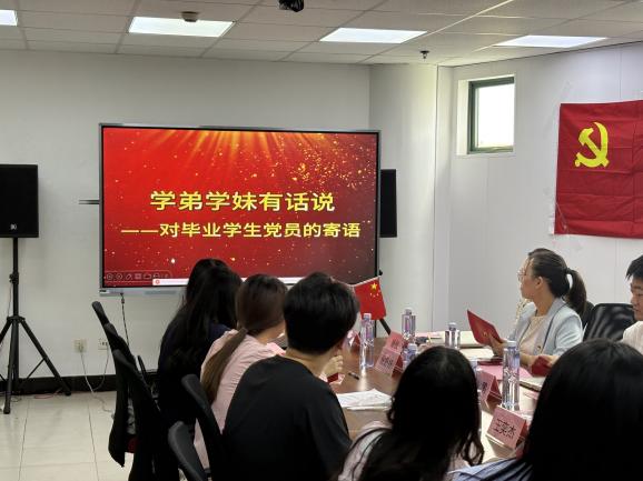党总支组织委员杨凤美向即将踏上新征程的毕业生党员们表达殷切期望。她深情回顾了毕业生党员们在大学期间的成长历程,从青涩懵懂到成熟稳重,从对党的知识一知半解到成为坚定的共产党员,每一步都离不开党组织的悉心培养和同学们自身的不懈努力。她指出,无论大家未来奔赴何方、从事何种工作,学院永远是每一位党员最温暖的港湾,这里承载着大家奋斗的青春记忆、师长的谆谆教导和深厚的同窗情谊。学院永远是毕业生党员们坚实的后盾,将一如既往地关注、支持大家的成长与发展,也衷心祝愿全体毕业生党员在未来的人生道路上一帆风顺,前程似锦。在学院寄语环节后,毕业生党员代表踊跃发言,饱含对母校的感恩之情,提及在校期间党组织的培养与关怀,感慨学院为其成长提供的平台和支持。全体毕业生定不负期望,以实际行动回报学校,在新征程中践行党员使命。他们纷纷表示,将牢记党组织的嘱托,把在大学期间学到的知识和培养的能力运用到实际工作中,为实现中华民族伟大复兴的中国梦贡献自己的力量。