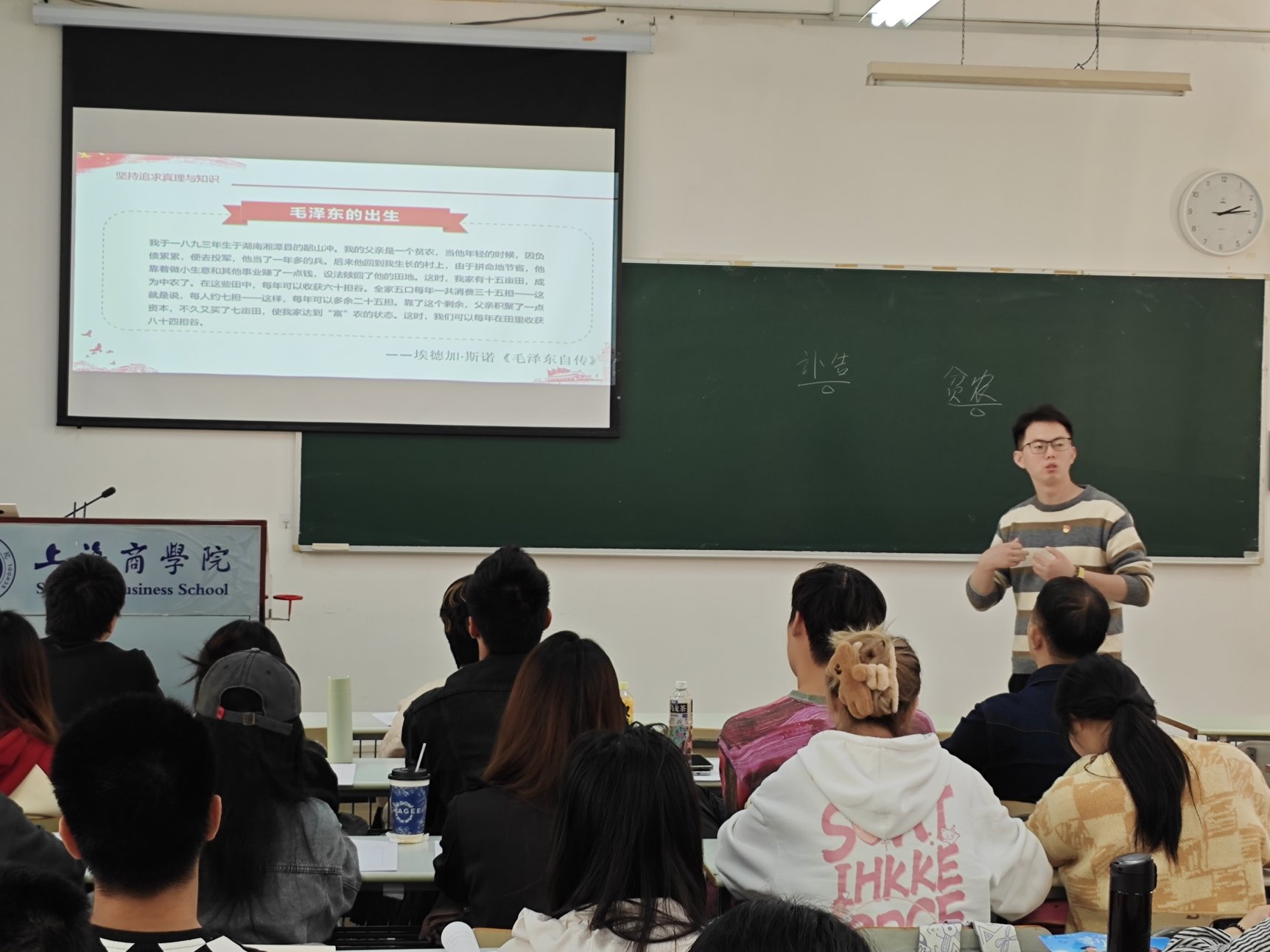 接着,商务信息学院宋逸平老师围绕《毛泽东的挫折与奋斗》,为入党积极分子们作第二讲。宋老师首先以同学们日常生活中遇到的挫折与困难为例,由此引出毛泽东同志所遇到的挫折与困境,他从“坚持追求知识与真理”、“事业受挫的等待与坚持”、“团结协作与坚持原则”、“结语”四个方面详细地为同学们讲解毛泽东同志青年时期的理想目标,以及是如何为了自己的理想努力奋斗的,也阐述了毛泽东同志在事业跌宕起伏时的心态变化、性格变化及处事方法的改变,宋老师用形象生动地语言深入浅出地给同学们描绘了毛泽东同志成长的伟大画面。党课最后,宋逸平老师勉励在场同学要在有限的青春年华里,努力学习,矢志奋斗,勇敢迎接生活中的各种困难与挑战。
