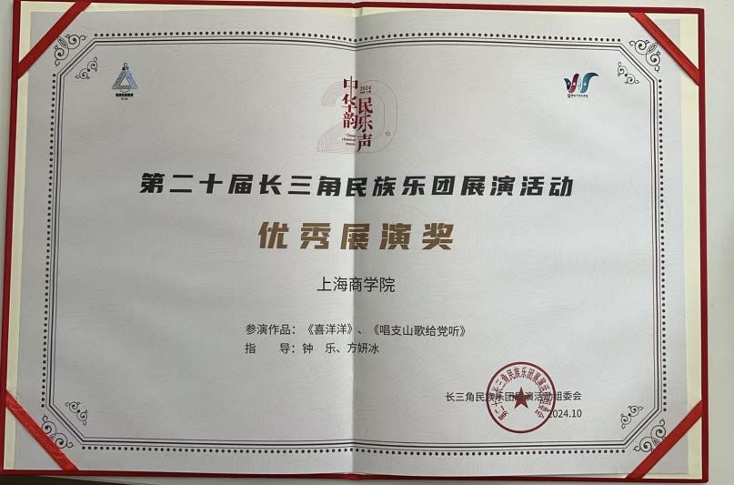 近日,长三角民族乐团展演活动组委会公布“中华韵 民乐声”第二十届长三角民族乐团展演活动获奖情况,上海商学院大学生艺术团民乐团、筝团凭借出色的表现,荣获“优秀展演奖”。