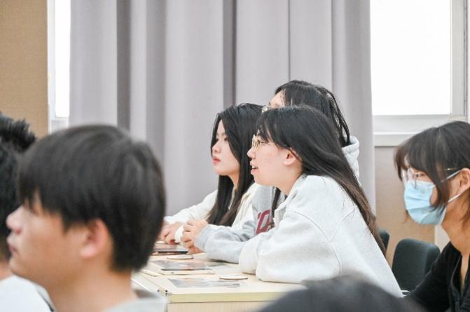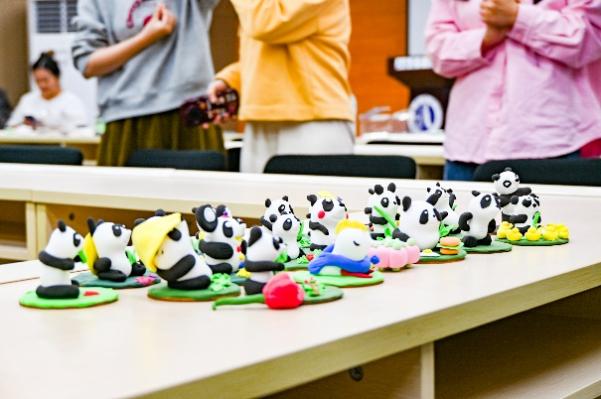 随后,张书嘉老师现场展示精湛的面塑技艺,她运用巧妙构思和精湛手法,将面团变为了一个憨态可掬的国宝熊猫。期间,张老师通过不断提问的方式,带领师生思考感悟每一个环节及手法背后的考虑。现场师生近距离观赏面塑技艺的制作过程,积极回应、竞相拍照。