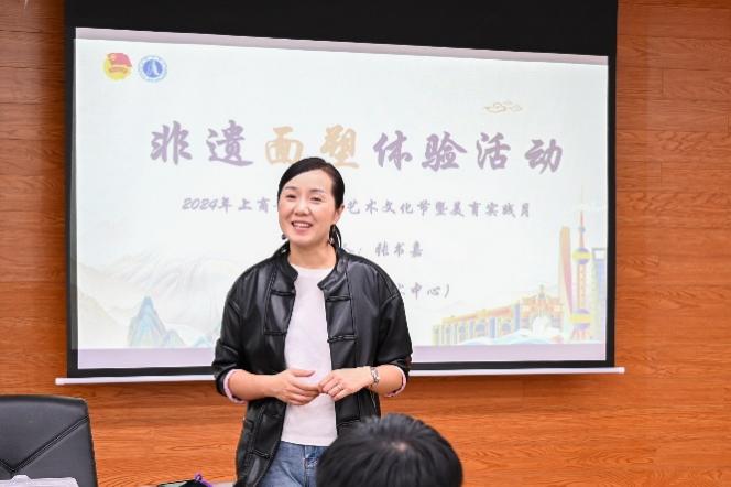 为大力传承弘扬中华优秀传统文化,10月29日下午,一场别开生面的非遗面塑体验活动在我校中山西路校区1401会议室开展,活动由校团委(大学生艺术中心)主办,特邀非遗面塑市级代表性传承人、市三八红旗手、上海青年文联理事、上海工艺美术学会理事张书嘉老师主讲。校团委书记卜树俊、挂职团干部孙浩浩及部分研究生师生参与活动。