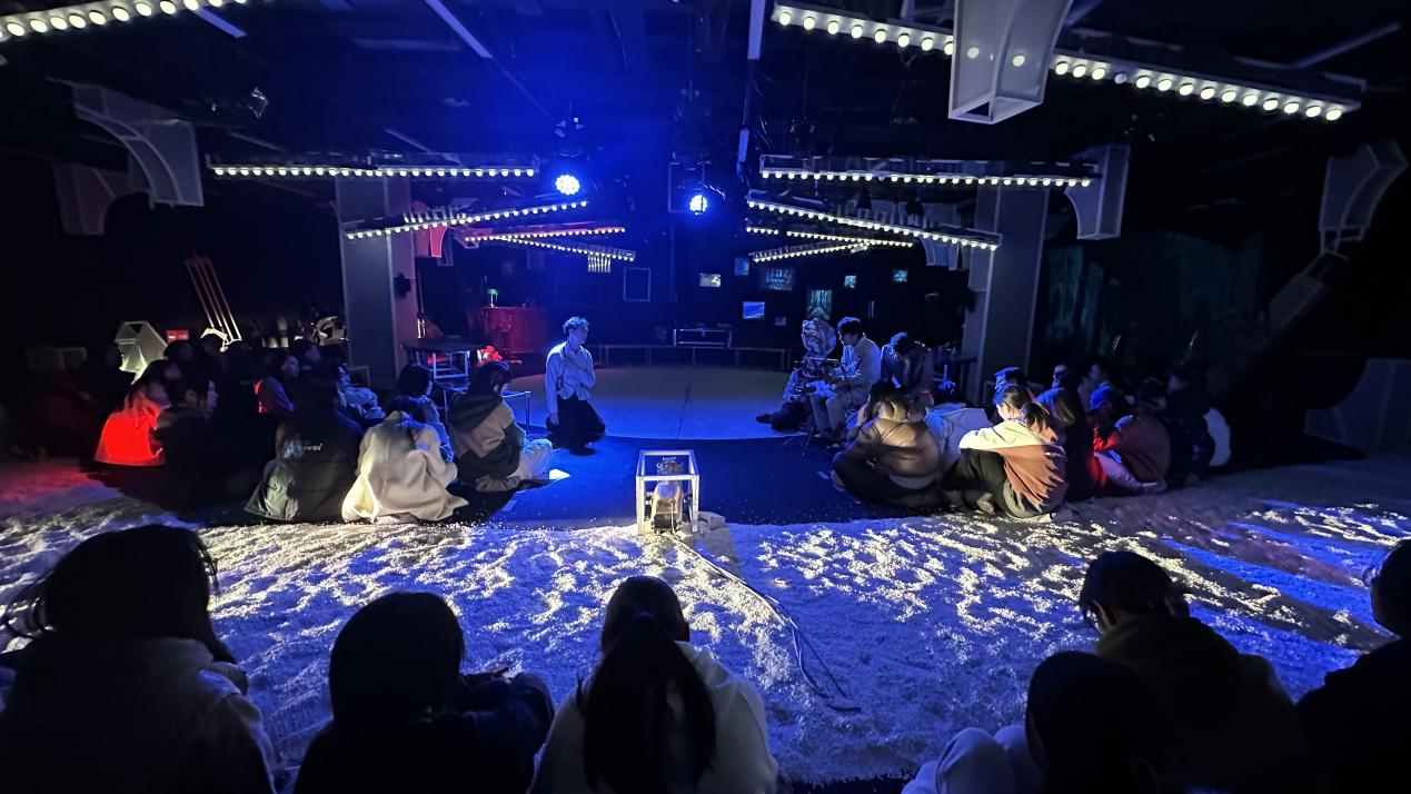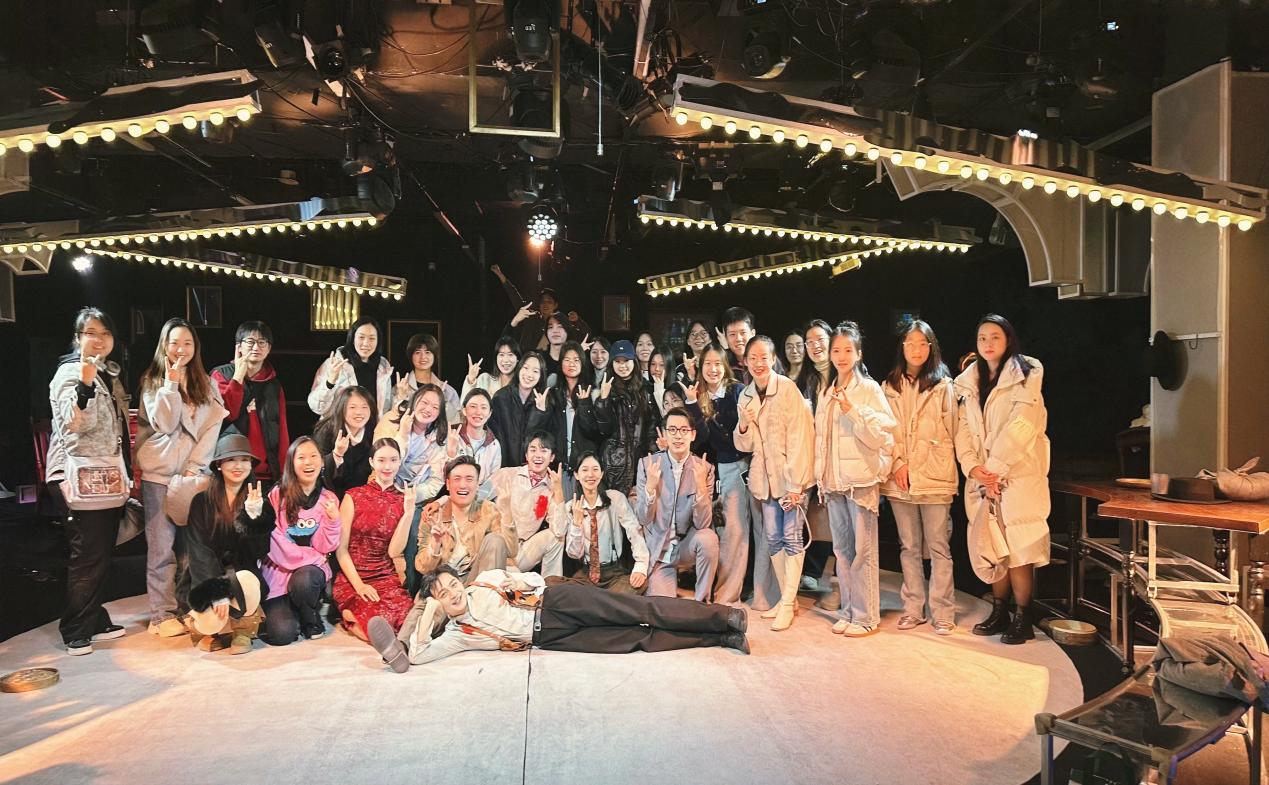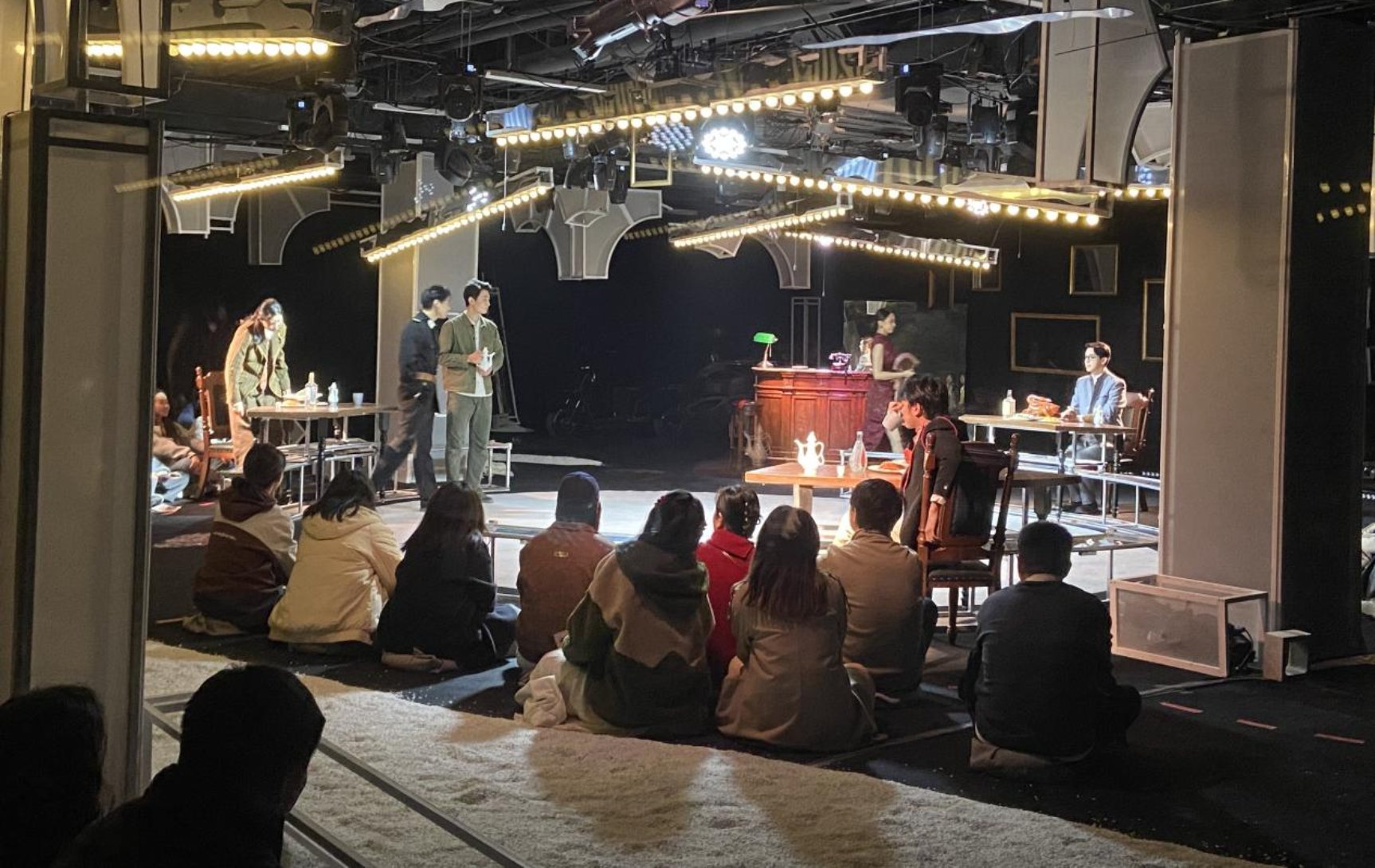 观演活动结束后,同学们意犹未尽、啧啧赞叹,纷纷与演员合影留念,互动交流。刘湛恒同学表示,作为大学生艺术团话剧团团长,他看过的剧不在少数,却第一次发现看剧也是一项体力活动,几条故事脉络和动线,观众跟着演员跑,演绎方式富有创意,整整两层精美的实景以及不同演员间的分线演绎,都给予了观众最佳的观演体验与互动感。希望以后有更多的机会走进沉浸式戏剧的剧场。宋依凝同学表示,踏入上海九棵树艺术中心的《尽春风》演出现场,仿若穿越至1943年的上海。“奉献庄”酒楼的实景布局精致逼真,从斑驳的墙壁到复古的陈设,每一处细节都散发着旧时光的韵味,瞬间将她拽入那个动荡不安的年代。演员们的表演堪称一绝,他们用细腻的情感和生动的肢体语言,赋予了角色鲜活的生命力。在近距离的观看中,她能清晰地看到他们眼神里的坚毅与挣扎,听到他们台词中的无奈与希望。剧情的层层反转,剧中人物在大时代洪流中的徘徊与抉择,深深触动着她的心弦。当剧终落幕,依然久久沉浸在故事之中,内心满是对先辈们的敬意与感慨。《尽春风》不仅仅是一场戏剧,更是一次心灵的洗礼,让她在历史的回响中,领悟到信仰与坚守的力量。