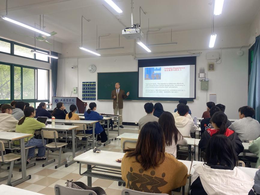 2025年5月9日,受商务经济学院邀请,德国汉高全球采购部经理贾庭建老师走进课堂,围绕国际商务活动实践,为师生带来《专业英语》专题讲座。