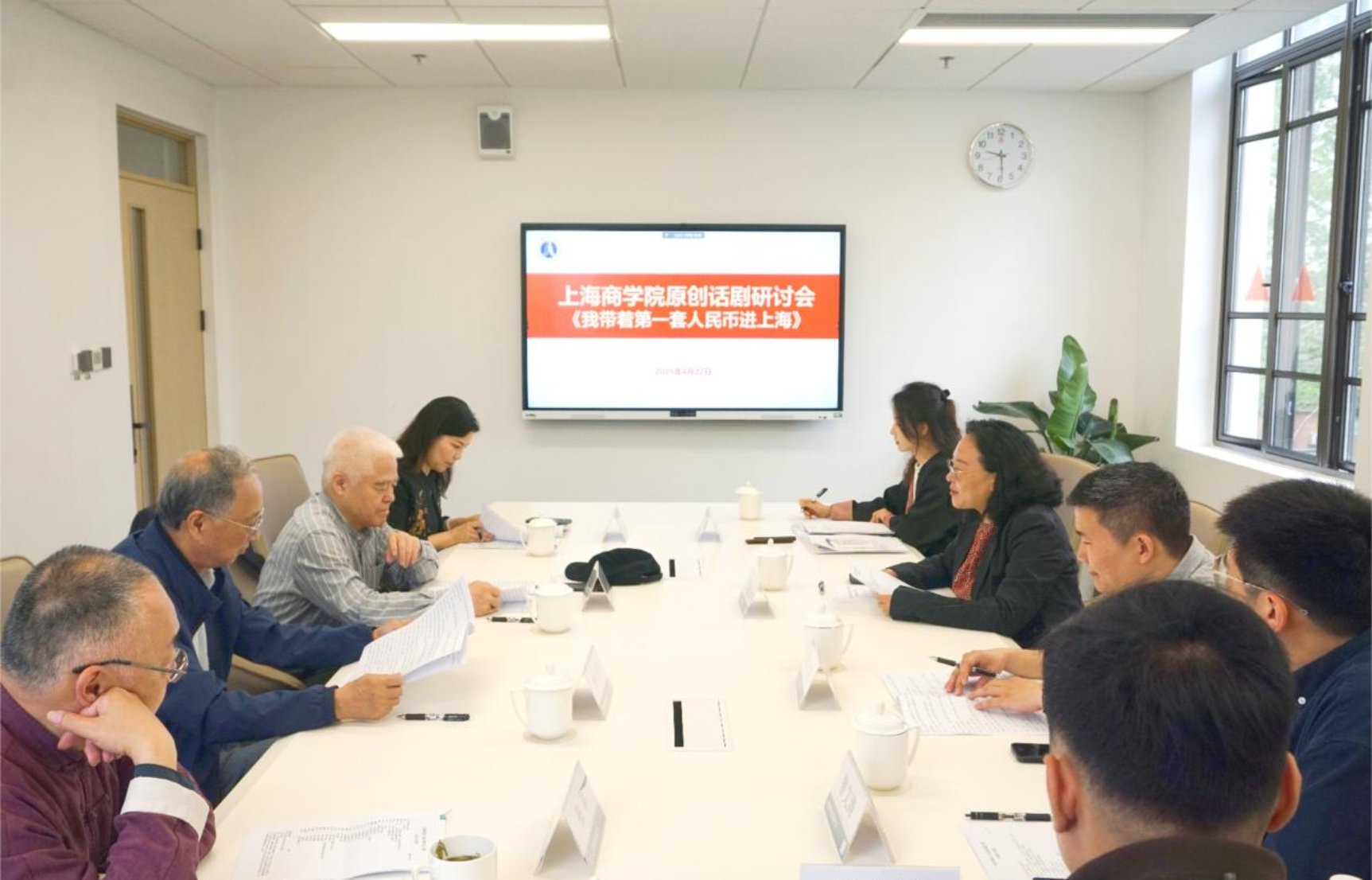 4月22日,上海商学院原创话剧《我带着第一套人民币进上海》专家研讨会在漕宝路校区327会议室召开。