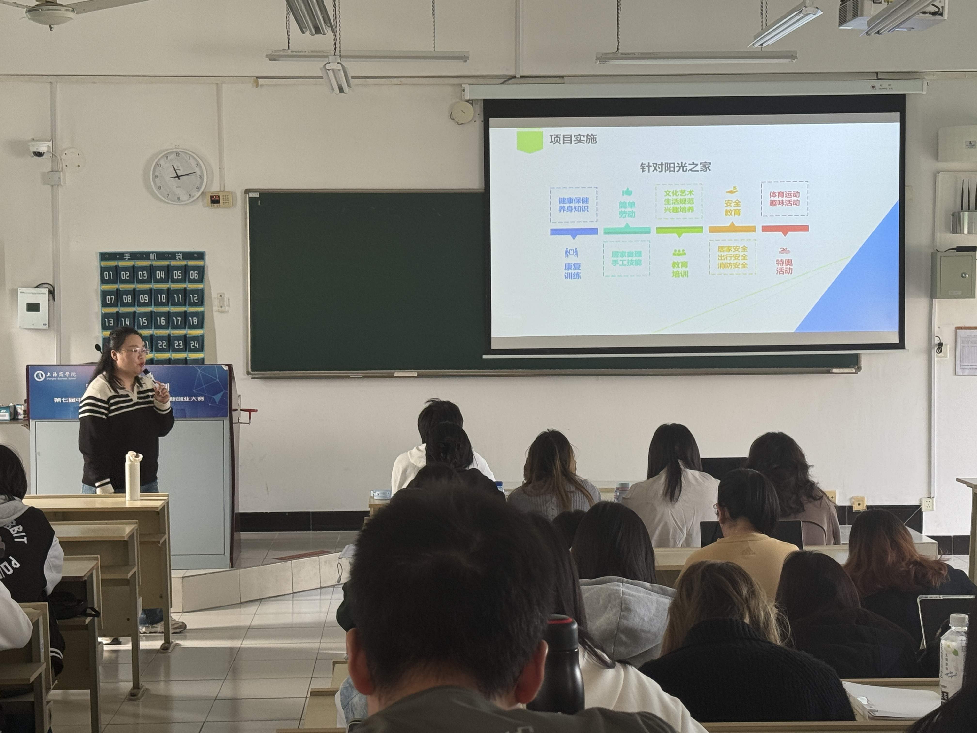 此外,邱老师还特别结合自己与同学们都熟悉的“阳光心园”,分享了在机构服务中的具体工作经验与心得。这一接地气的内容迅速引发了同学们的强烈共鸣,不少在“阳光心园”有过实习经历的同学,就自己的观察和困惑与邱老师展开了热烈交流。