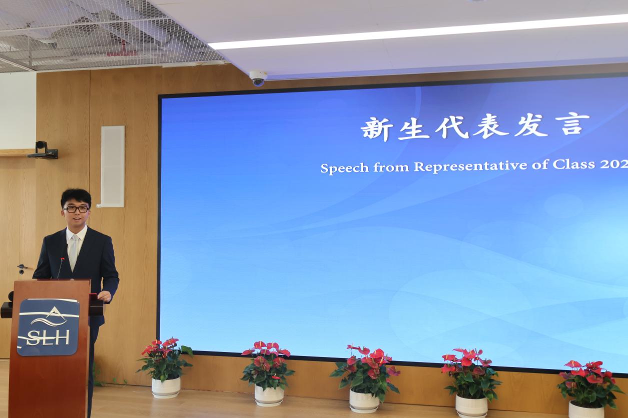 酒店管理252班的胥如果同学作为新生代表发言,分享了选择上海洛桑酒店管理学院的初心,表达了对未来专业学习与实践探索的期待,期待与同学们在课堂学理论、在实训练技能、在讨论碰思想,共同探索泛服务业,以卓越回报培育、以智慧回应时代。