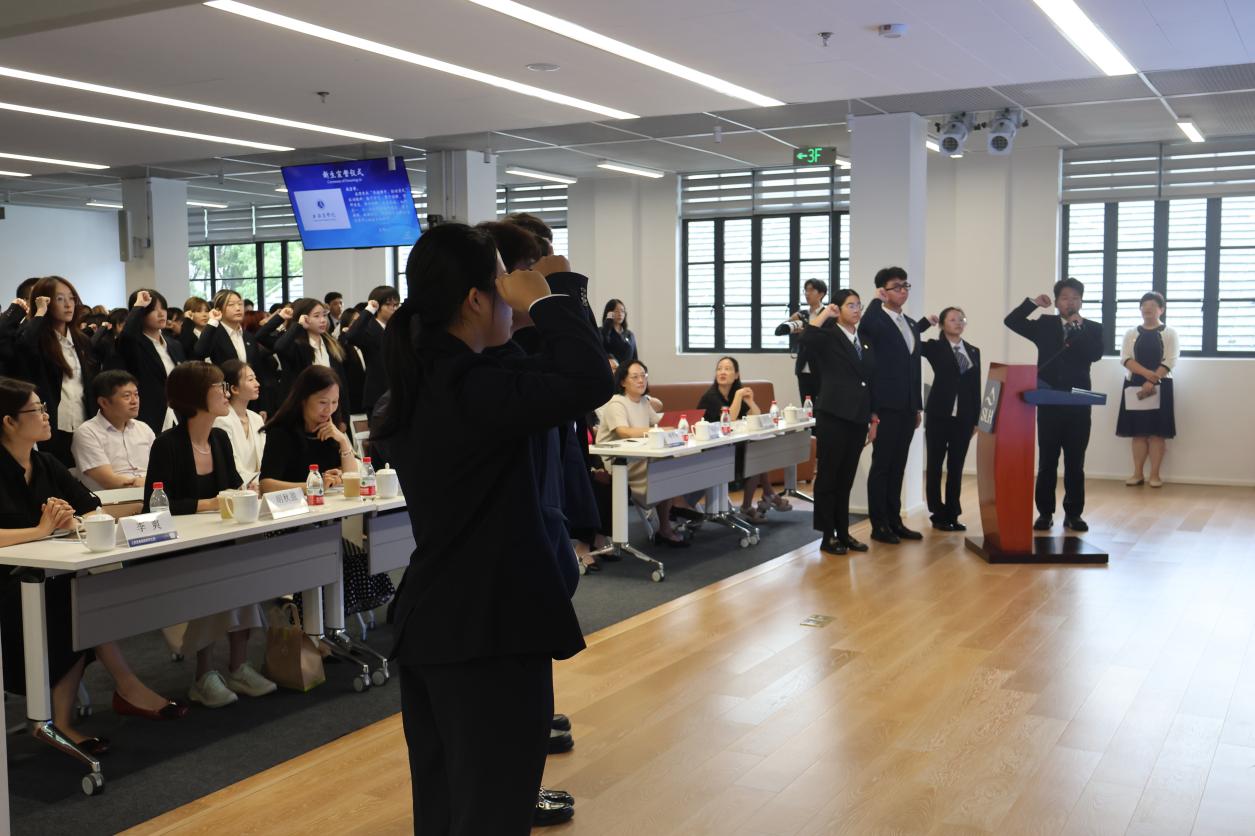 在付健豪等八位同学的带领下,全体2025级新生高声宣誓,铿锵有力的誓言回荡在会场,宣告着新生们对学业、行业与社会的责任与承诺。