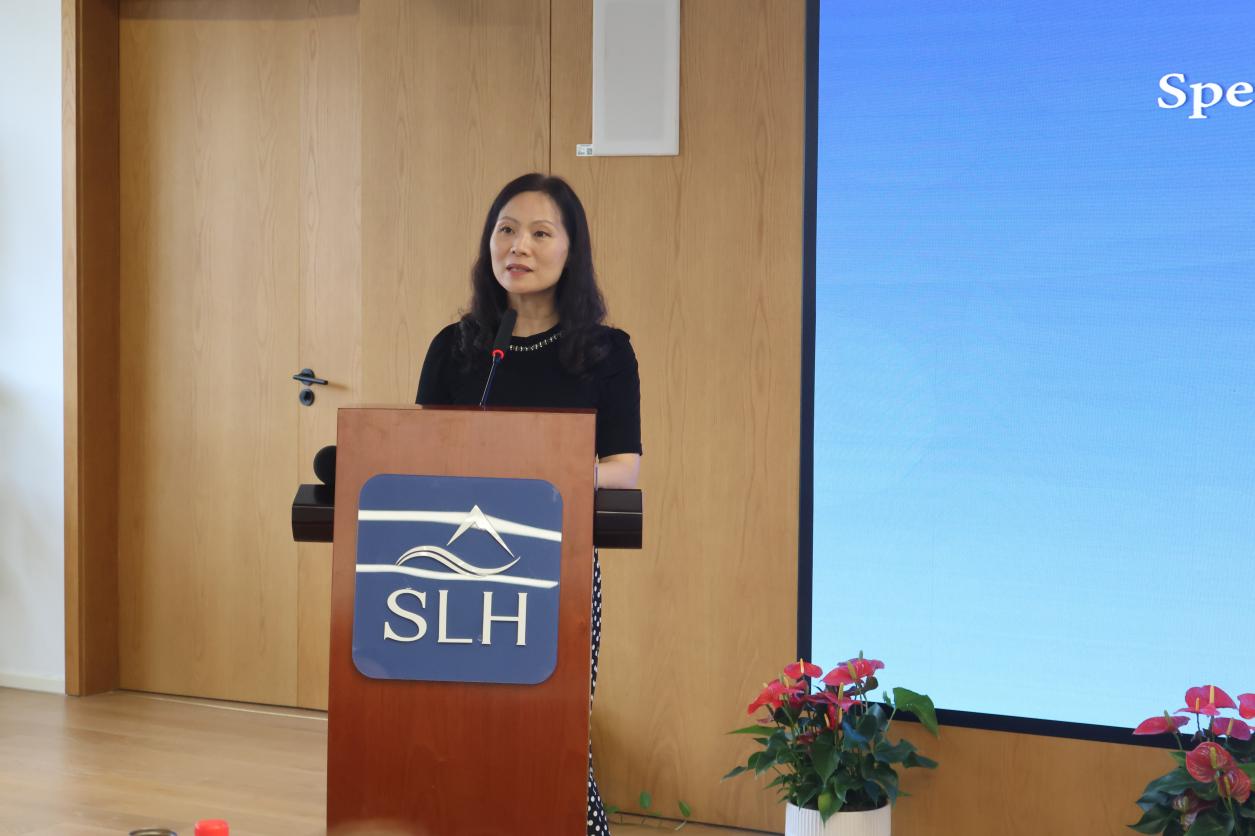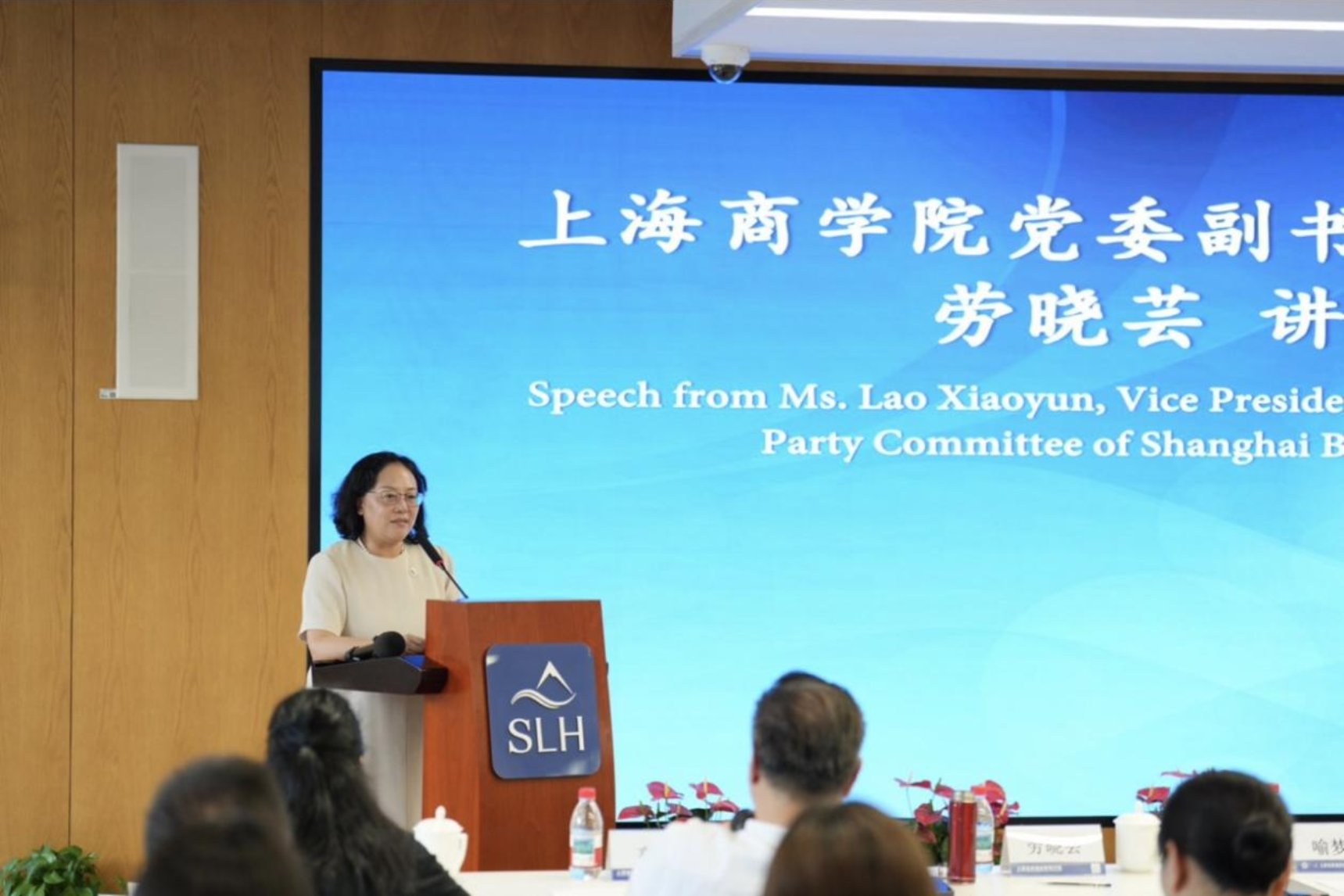 图为上海商学院党委副书记、副校长劳晓芸讲话
