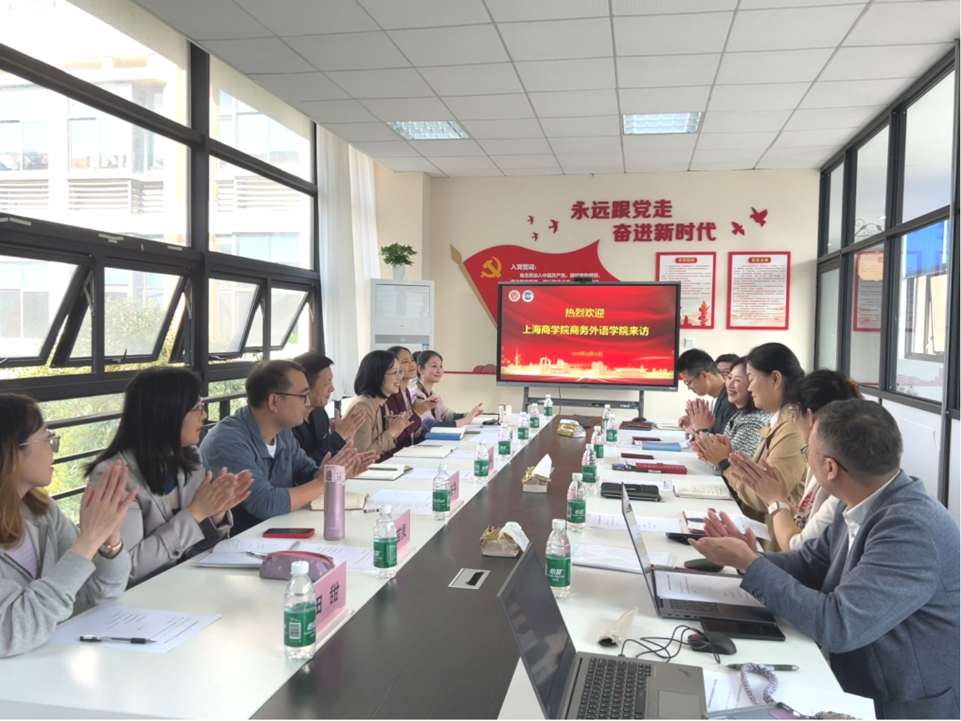 为进一步提升在人才培养、学科建设、专业发展、教研团队建设等方面的质量,10月11日上午,商务外语学院领导班子、商务英语系正副主任等一行8人,前往上海应用技术大学外国语学院开展学习交流活动。上海应用技术大学外国语学院党总支书记杨雪、党总支副书记、院长潘智丹、党总支副书记、副院长周雄才、教学主管迟娟、科研主管叶湘等出席交流活动。活动由周雄才主持。