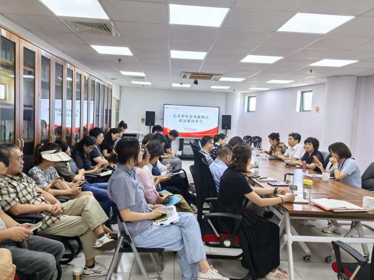 为庆祝我国第40个教师节,进一步贯彻落实习近平总书记关于教育的重要论述,弘扬教育家精神,9月13日下午,文法学院在行政楼607会议室召开全体教职工大会,传达学习习近平总书记在全国教育大会上的重要讲话精神,同时就做好老师、做“大先生”,弘扬教育家精神,进行了全面学习,学习会议由学院党总支书记朱永莉主持,全体教职工参加会议。