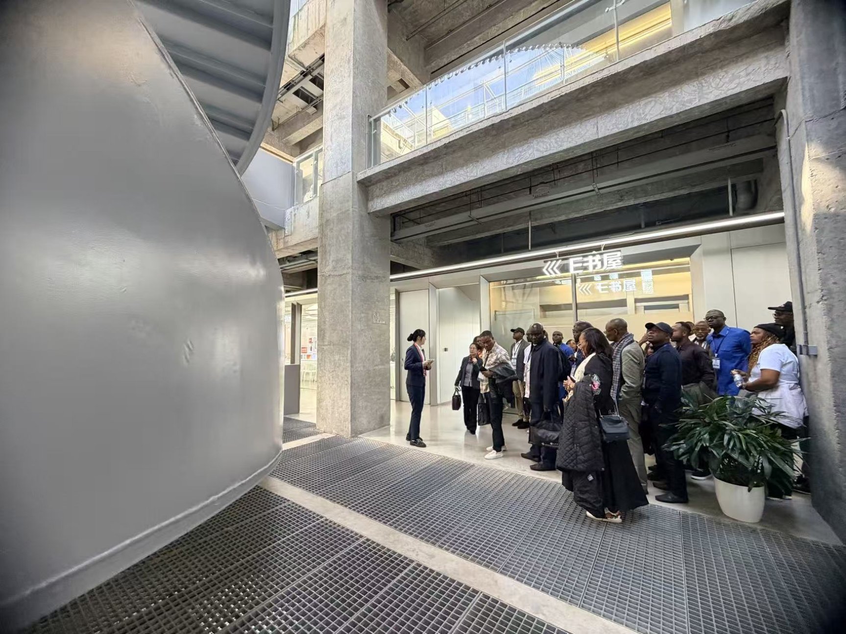 在人民城市实践展示馆,学员们通过环形沙盘与交互式屏幕,沉浸式了解了上海在旧区改造与公共服务提升方面的创新实践。随后,考察团沿滨江步道实地调研,对融合休憩、饮水、阅读等多元功能的“人人屋”驿站表现出浓厚兴趣,其“城市客厅”理念引发了热烈讨论。活动的最后一站是由旧烟草仓库成功转型的“绿之丘”生态综合体。学员们重点考察了其垂直绿化体系与低碳技术应用,对这一工业遗存活化与生态理念完美结合的范例给予了高度评价,认为其为非洲国家的可持续城市更新提供了极具参考价值的实践方案。