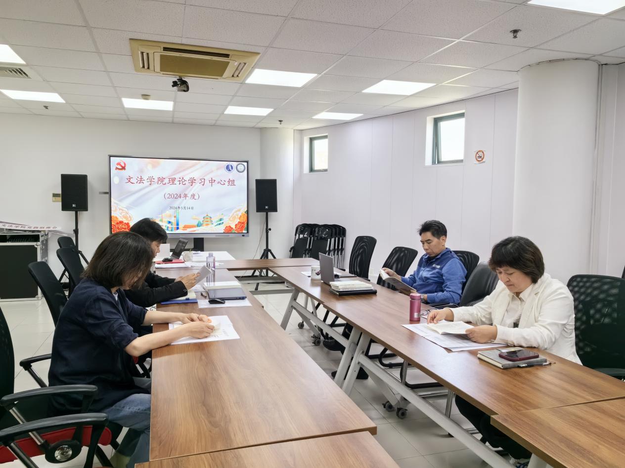 图为文法学院党政领导班子学习《中国共产党纪律处分条例》