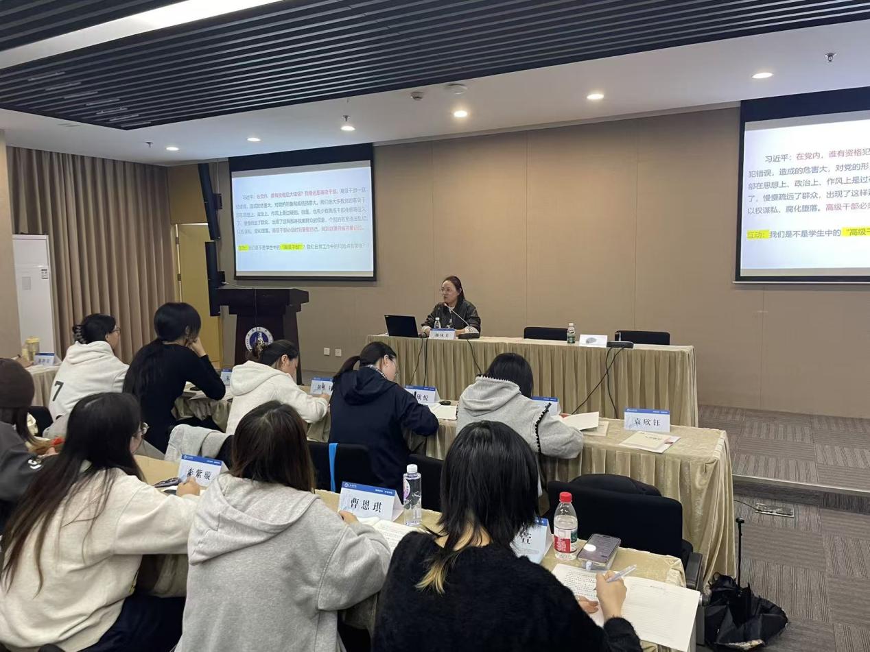 本次培训精心搭建集中理论学习平台,邀请到长宁区委党校郝清羽、学校党校“初心”讲师团成员杨凤美授课,聚焦党的创新理论开展系统教学。郝清羽以“深学细悟党的二十届四中全会精神”为主题,从全会时代背景、核心要义、实践要求出发,结合青年成长实际与教育领域发展,引导学员深刻把握新时代党的使命任务,明晰青年党员的责任与担当;杨凤美则以“严守党的纪律规矩”为核心,通过典型案例剖析、纪律条文解读相结合的方式,帮助学员厘清党员义务与行为底线,进一步强化规矩意识、筑牢纪律防线,为成长为合格共产党员夯实思想根基、补足精神之钙。