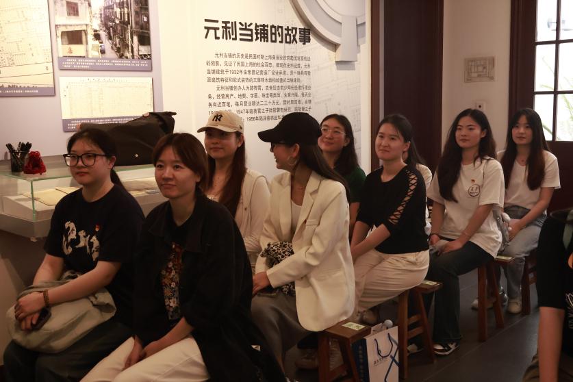 坐落在武定路203号的元利当铺旧址博物馆,建于2019年8月,建筑面积1096平方米。当铺旧址营建于1932年,是一幢集我国徽派建筑特色和欧式装饰风格的三层砖木结构建筑,曾被誉为“海上第一当”。元利当铺旧址也是迄今上海仅存的规模最大和保存最完好的当铺建筑。在这堂情景思政课中,讲解老师徐蓓琳以其生动有趣的讲解方式,通过四个精心设计的环节,带领大家沉浸式地体验“典当”。